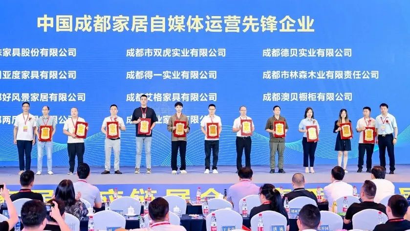 成都市家具行业商会会长古皓东、中共成都市家具行业商会党支部书记银永康上台,为获奖企业颁发了奖牌。至此,中国成都家居供应链展会暨高质量发展峰会闭幕。作为集品牌推广、产品推荐、供需对接、拓展资源的创新平台,中国成都家居供应链展会暨高质量发展峰会搭建了成都供应链企业与家居企业之间“供应与采购”的桥梁,展示新产品、新材料、新工艺,探索新思维、新模式、新未来,汇聚成更强大的创新力量,助推成都家居行业实现高质量发展。