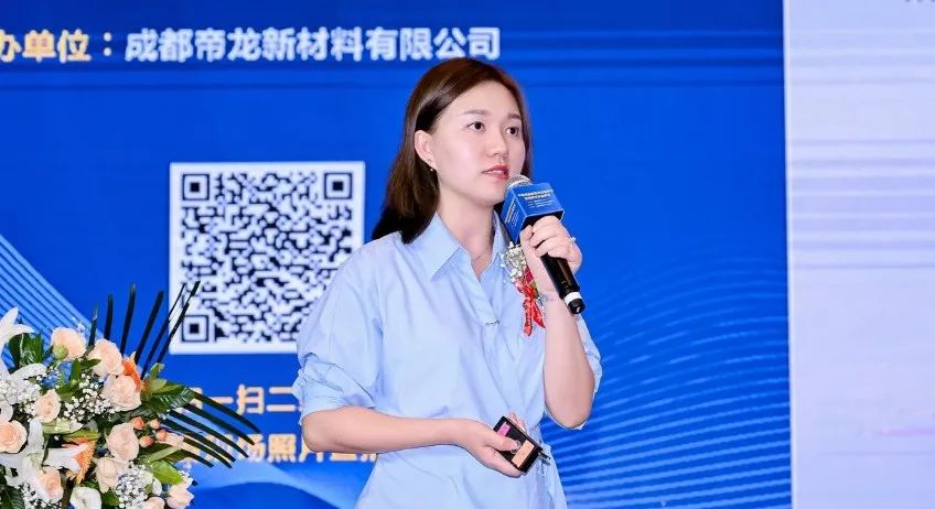 成都帝龙新材料研发设计总监林静丽分享了《未来趋势及新品推荐》,为来宾解析了2023年家居空间趋势预测,以及帝龙如何以“懂花色,更懂中国”的理念搭建材质和色彩矩阵,带来更美好的空间呈现。