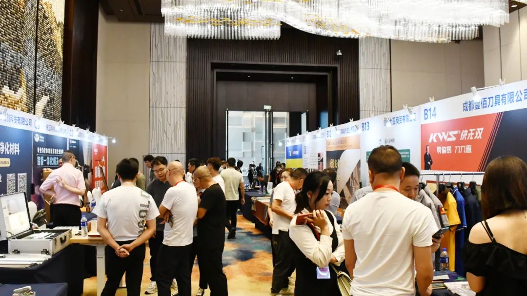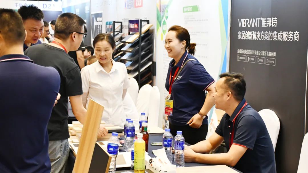 装饰材料秀场以丰富多彩的花色掀起时尚潮流风暴,帝龙新材料、佳饰新材料、杰家装饰材料、广茂汇诚装饰材料、新向阳装饰材料、森普达装饰纸、科乐福新材料等品牌企业携新品亮相,让观展者了解到时下趋势的主流产品风格。综合秀场中,顶立新材料、乐源新材料、嘉宝莉涂料、豪锐刀具、三锐工具、锐迈科技、壹佰刀具、金迪莱数控、小拳头照明、欧锘斯五金、帝特五金、中岩岩板、众信威伦皮业、德森皮革、泰山环保、东乐智能环保、科华展示设备、天佑晶创、小亿网络(万师傅)等品牌企业分别带来了亮眼新品和解决方案,展示家居供应链的创新成果。现场吸引500+人次前来参观,涵盖家居行业总经理、设计、采购、生产、营销等各职能岗位管理人员。实现了参展企业精准、高效、便捷地触达目标客户,解决了供需双方采购痛点,拓宽了供需双方互联互通的渠道,为行业复苏、促进合作注入了“强心剂”。下午14:00,由成都市家具行业商会主办,雅安市汇龙环保新材料独家冠名,成都帝龙新材料协办的中国成都家居高质量发展峰会在会议厅A、B厅重磅开启。