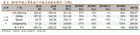 2018Q1-3 国内共批签发(10g/瓶)3320.53万瓶,同比增0%;2018Q3批签发1207.98万瓶,同比+13%,18Q3批签发数量改善明显。