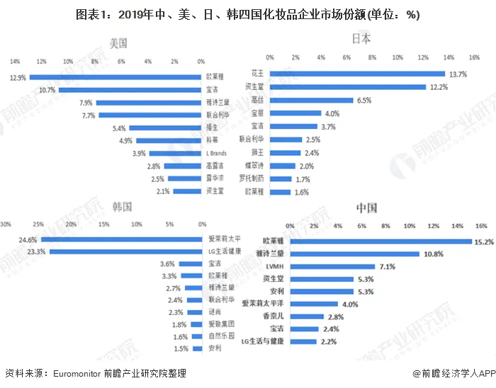 并且国际化妆品企业品牌众多,如欧莱雅集团旗下品牌包括顶级品牌赫莲娜,二线产品兰蔻,碧欧泉;三线或三线以下产品巴黎欧莱雅,契尔氏,小护士,美体小铺等。