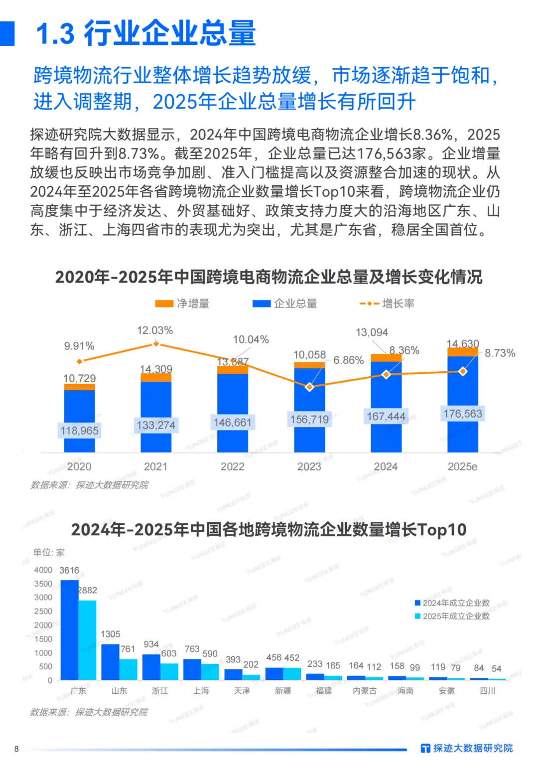 企业与区域:企业总量 17.6 万余家,增长放缓(2025 年增速 8.73%),81% 集中于广东、上海、山东等沿海省份,广东稳居第一;行业呈 “金字塔格局”,头部企业加速整合,中小微企业占比高、抗风险弱。