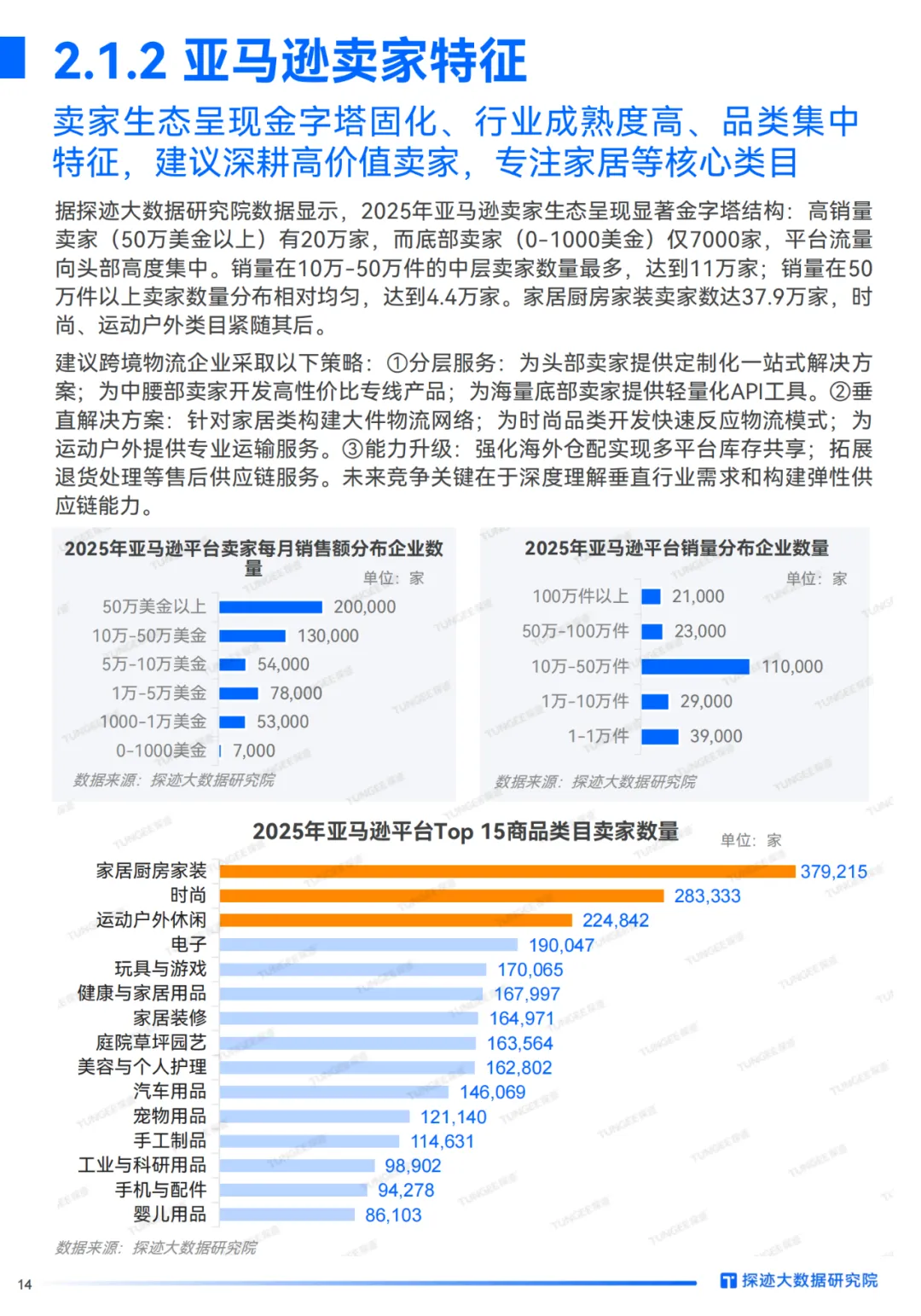 亚马逊卖家:FBA 仍为主流(占比 65%),但自发货卖家增长至 22 万家;北美是核心市场,巴西等拉美市场成新增长极,大件物流需求随海外仓成熟上升。