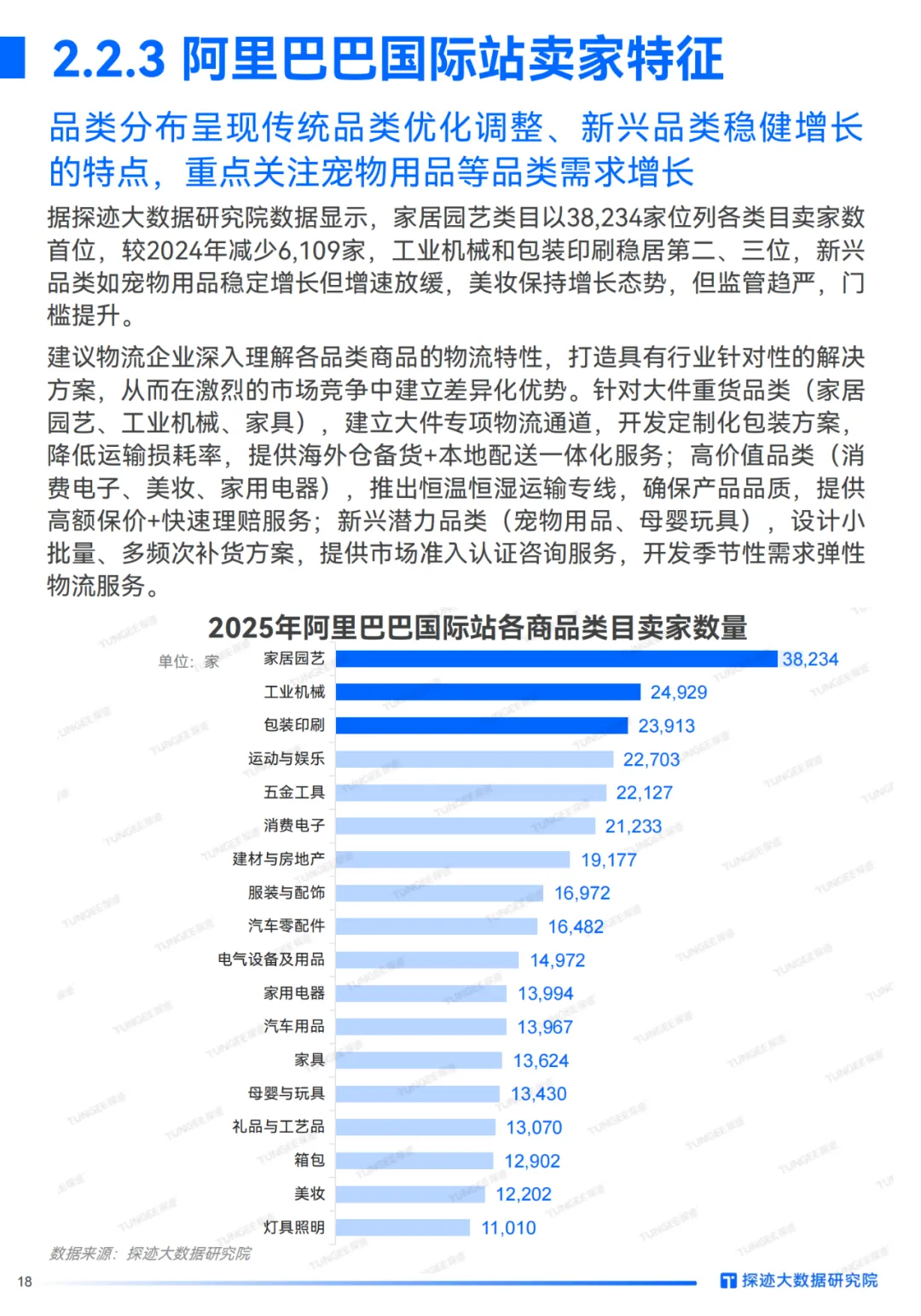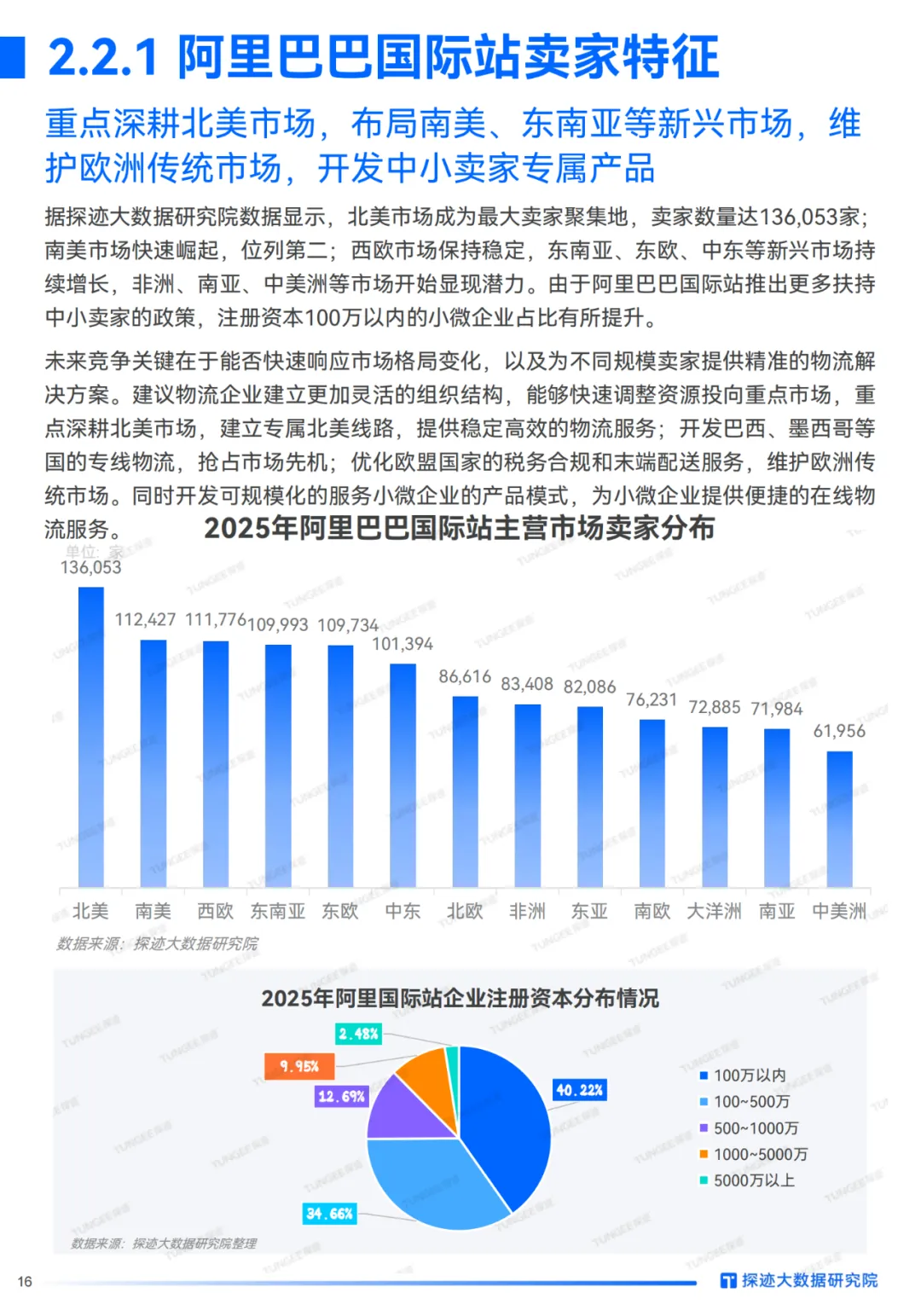 阿里国际站卖家:北美、南美市场需求突出,广东 + 浙江占比 57.6%,4-5 星高质量卖家增长 33.2%,需针对性开发专线与中小卖家产品。