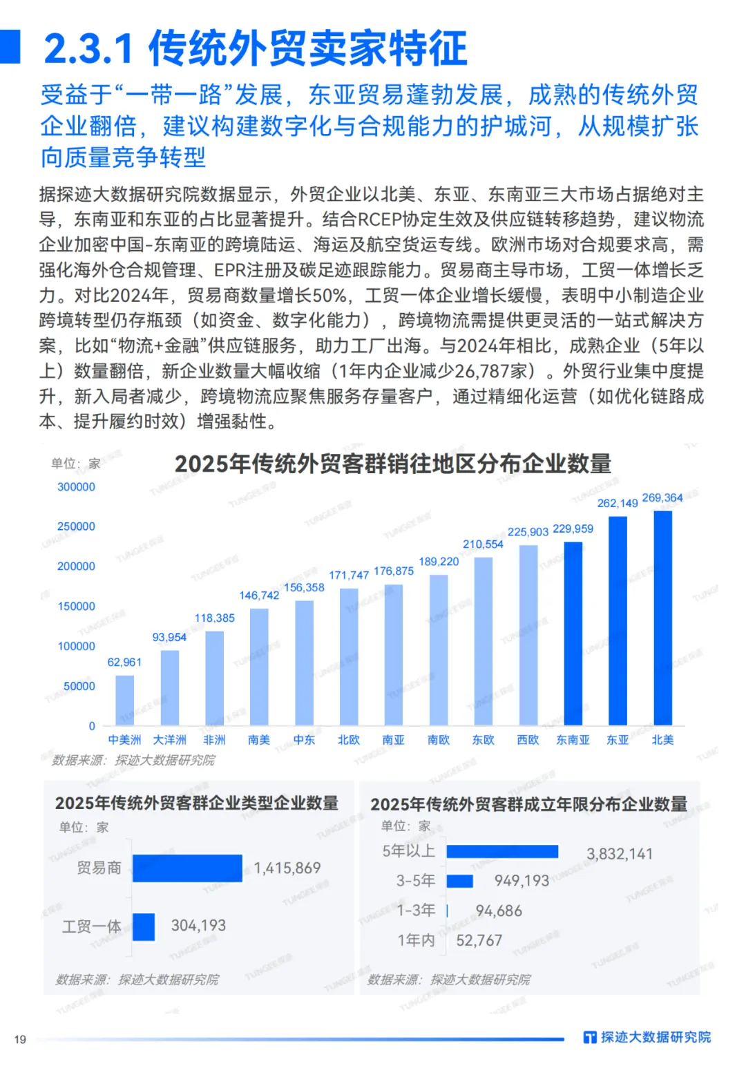 传统外贸卖家:受益 “一带一路”,东亚、东南亚贸易增长,海运仍是主流(企业数同比增 94.6%),但空运因高附加值货需求增长 25.7%。
