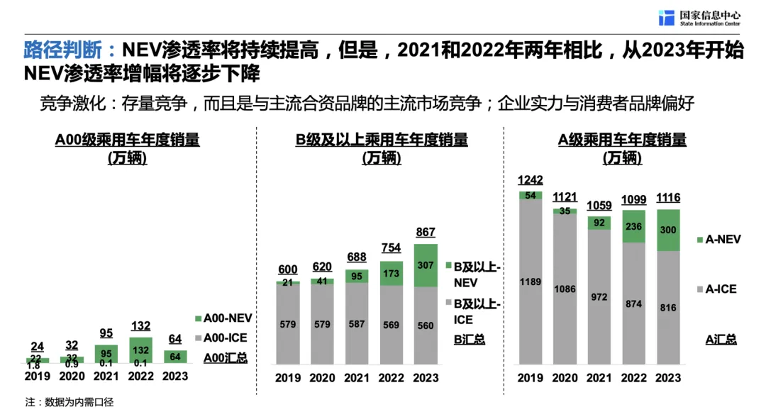 未来几年NEV渗透率还将进一步提高,但与2021和2022年相比,从2023年开始NEV渗透率增幅将逐步下降,主要原因是当前竞争激化。
