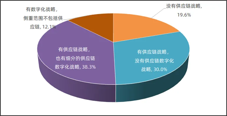 如图1所示,68%的企业有供应链战略,38%的企业制定了细分的数字化供应链战略,仅有20%的企业没有供应链战略。