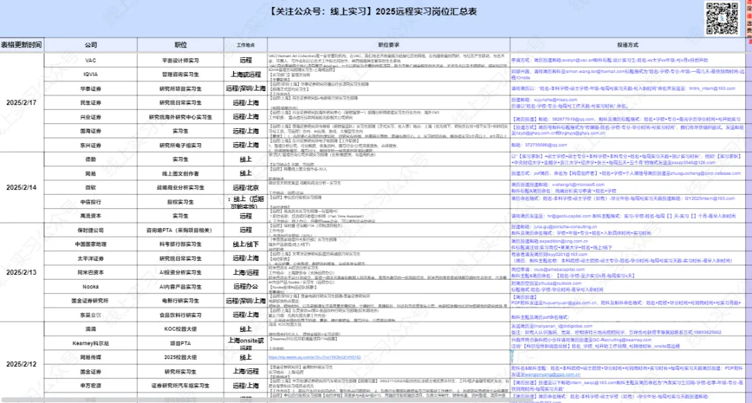 可以每天(除节假日外)获得30+校招或实习招聘信息岗位更新