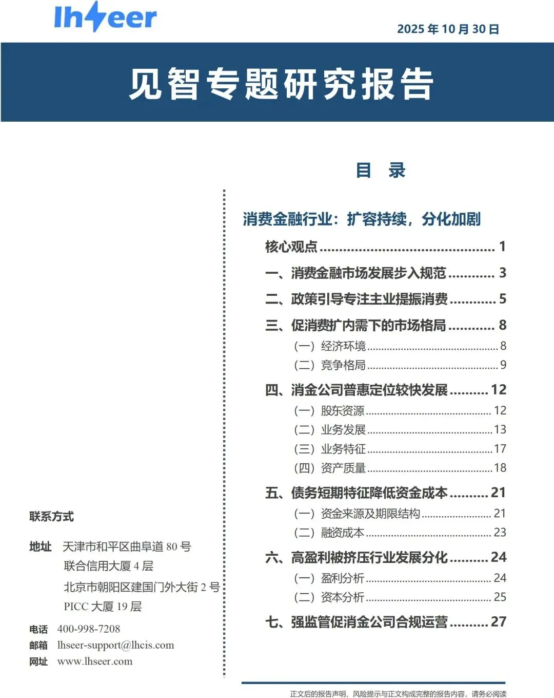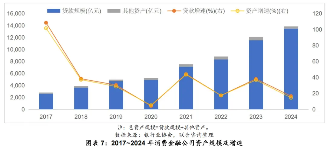 消费金融公司(“消金公司”)作为我国消费金融市场的重要参与主体,基于其产品体系灵活性、便捷性和时效性的特点,与商业银行等机构展开错位竞争。近年行业整体资产体量和贷款业务规模仍保持较快扩容,但各机构发展分化愈发明显,行业头部化特征明显,部分机构业务规模收缩。在经济下行周期压力、居民负债率较高且居民收入存在波动等因素影响下,居民消费意愿与信心受到一定扰动,信贷需求增长整体承压,这也是影响消费贷款业务增长和资产质量的底层因素。
