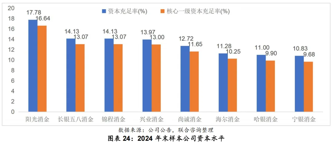 消金公司贷款投放整体呈现小额分散、短期主导和客群下沉的特征。由于定位下沉市场,消金公司仍普遍具有较高的盈利性,但近年商业银行业务逐步下沉,消费金融业务竞争加剧,且消金公司贷款定价水平下降,加之长尾客户信贷风险相对偏高,部分机构资产质量下行推升信用成本,收入和成本同时挤压,行业盈利能力增长承压。资本方面,在2024年初监管要求提升消金公司注册资本最低限额后,行业迎来密集增资,但仍有部分主体未及时完成增资,可能与其经营状况或不及股东预期有一定关系。目前消金公司资本补充渠道相对单一,个别主体资本充足性指标安全边际不足,将对业务发展形成一定制约,面临一定资本补充压力。