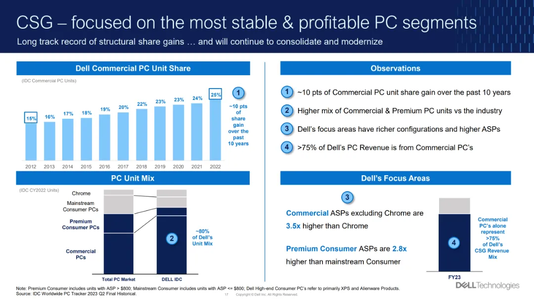 市场对我们专有的软件定义存储解决方案需求强劲,已实现连续八个季度增长。我们的客户端解决方案集团业务环比增长8%,附加率强劲。同时,人工智能(AI)已显示出长期的推动力,将助力我们的产品组合需求持续攀升。