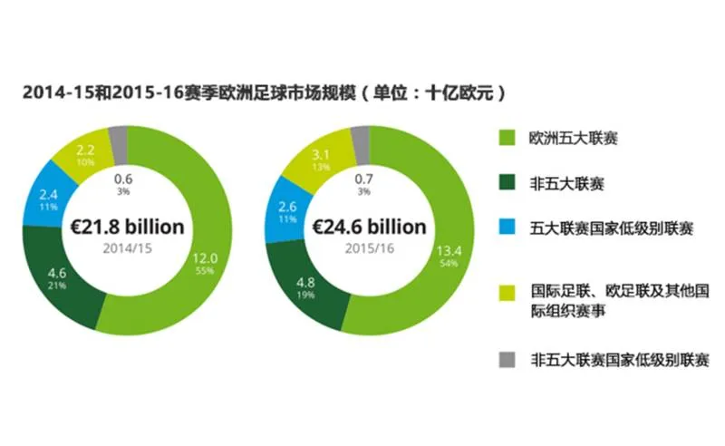 * 2015-16赛季,欧洲五大联赛总收入增长了14亿欧元(12%)