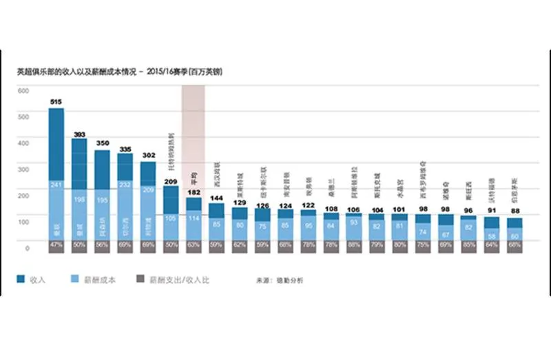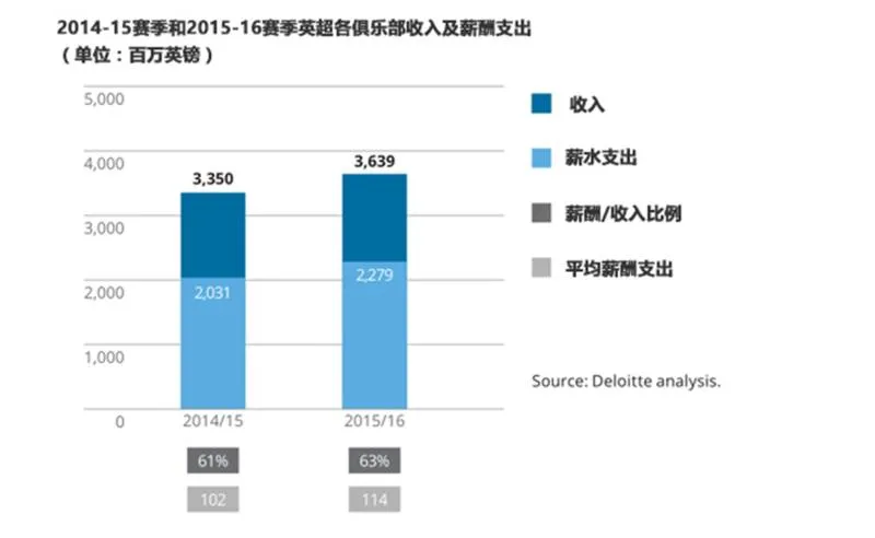 2015-16赛季英超各俱乐部的总薪水支出达到了近23亿英镑,比前一赛季上涨了12%,这也是过去10年中第8次出现薪水支出增长速度超过收入增长速度的情况。