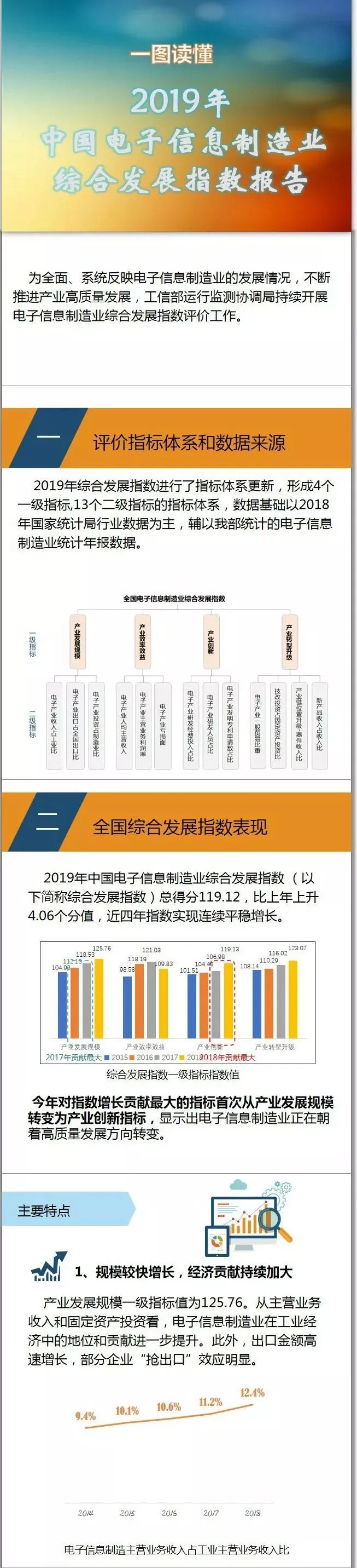 近日,工业和信息化部发布了2019年中国电子信息制造业综合发展指数报告,报告分析支撑单位中国信息通信研究院就报告有关内容解读如下: