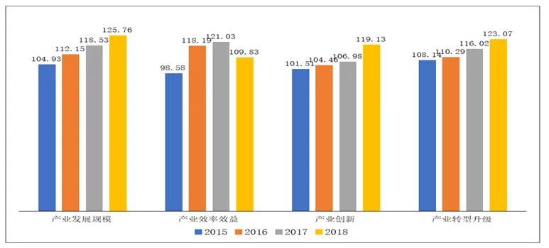 产业效率效益一级指标值109.83,较上年下降11.2个分值。其中主营业务利润率和亏损面指标均出现下降。