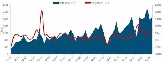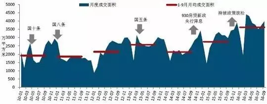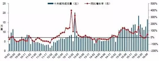 图:2010-2016年9月50个代表城市 月度成交量走势