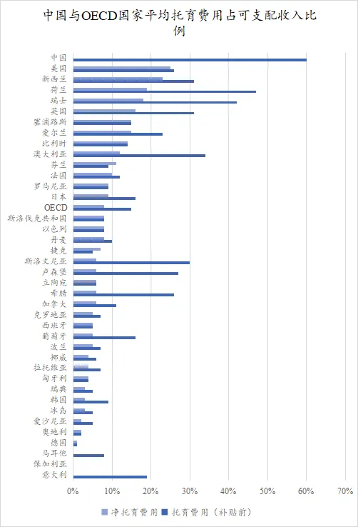 法国在托育服务方面经验丰富,其托育比例高达57.86%(2022年OECD数据),法国2-3个月的婴幼儿就可以送去托儿所,为年轻父母提供了极大的便利,使他们能够更早地回归工作岗位。法国政府全额补贴低收入家庭的托育费用,减轻了这些家庭的经济负担。同时,对于企业举办的托儿所,政府还提供税费抵扣等优惠政策,鼓励企业参与托育服务。