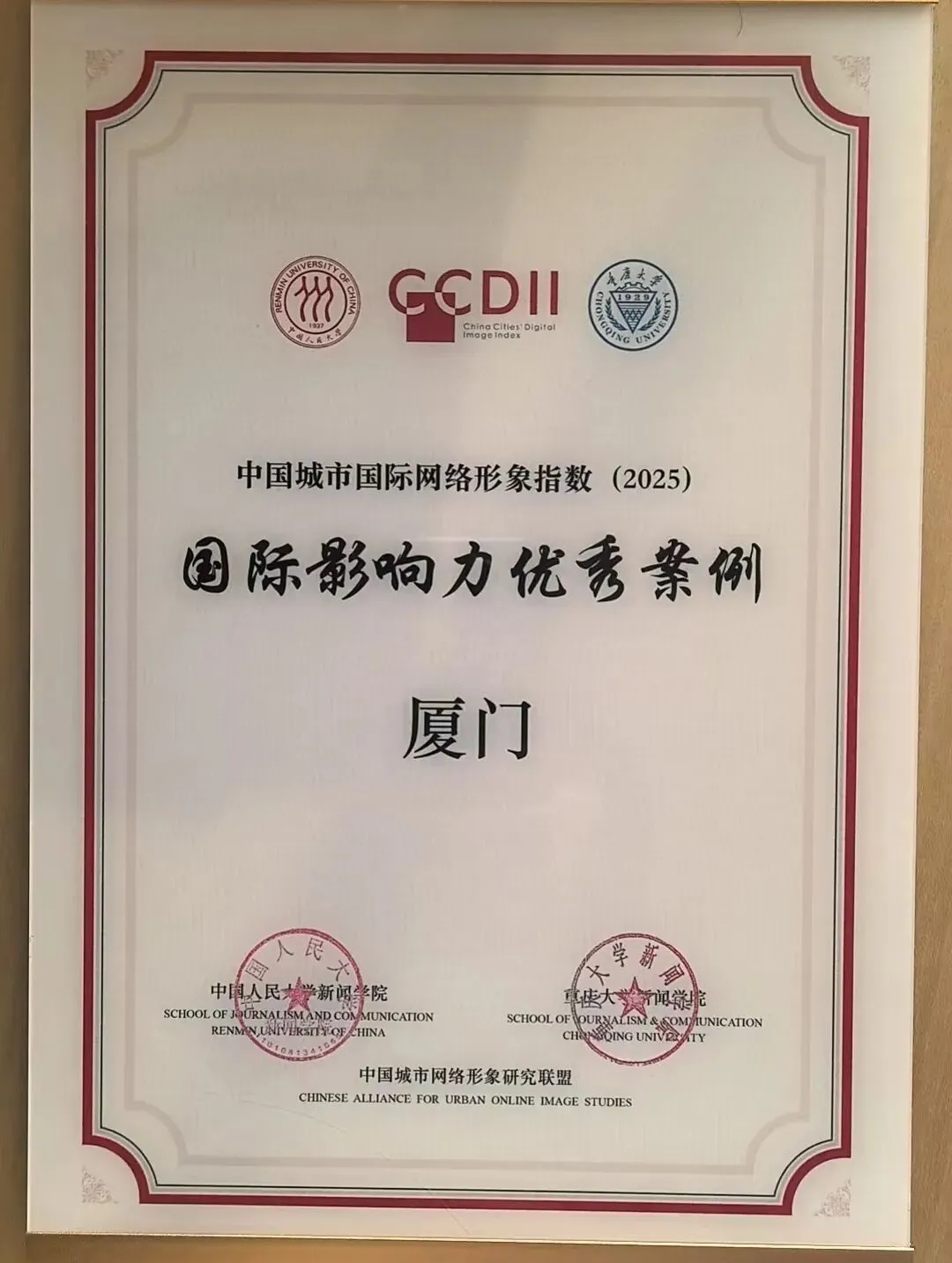 厦门在国际网络形象指数跻身全国城市国际网络形象第一方阵,位列全国第七,在同类I型大城市中综合排名第一。其中,国际认同力指数在同类I型大城市排名第一,国际传播力、国际影响力指数均排名第二。厦门入选《中国城市国际网络形象指数报告(2025)》国际影响力优秀案例。