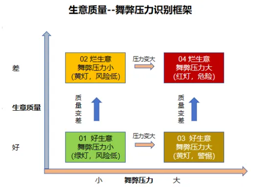 压力是舞弊动机的关键要素,外在压力与内在问题结合,往往产生舞弊的实际动机。外在压力包括:IPO、融资、资本运作、保壳、减持、业绩考核、对赌承诺等,内部问题包括:企业核心能力欠缺、面临竞争恶劣、环境逆风、商业模式不佳、治理混乱等。