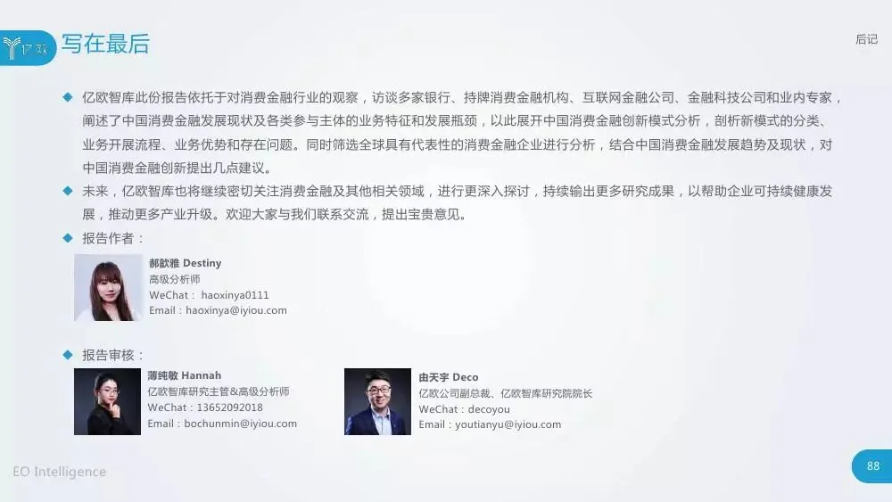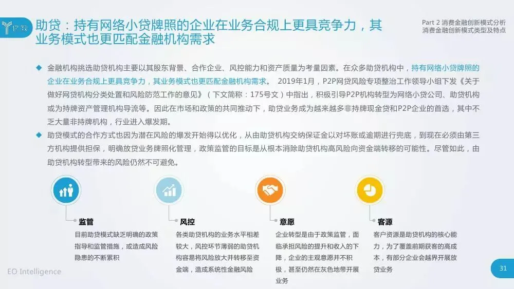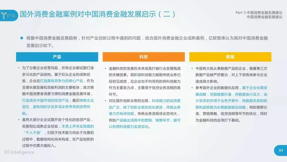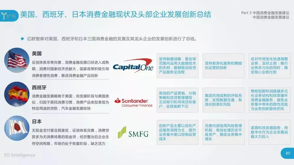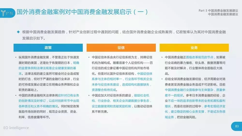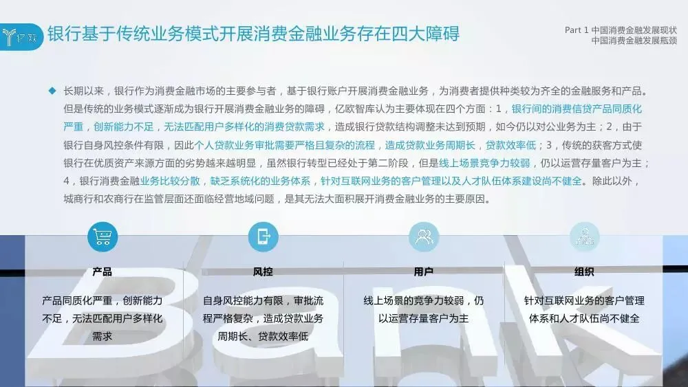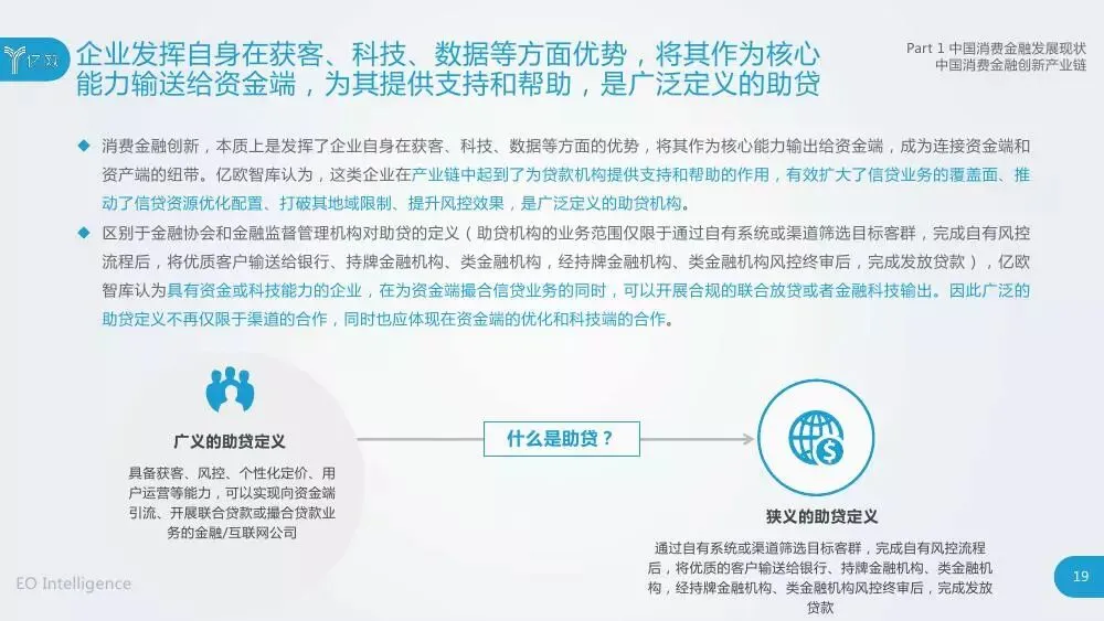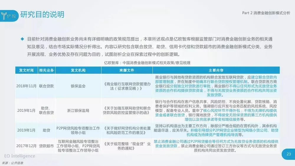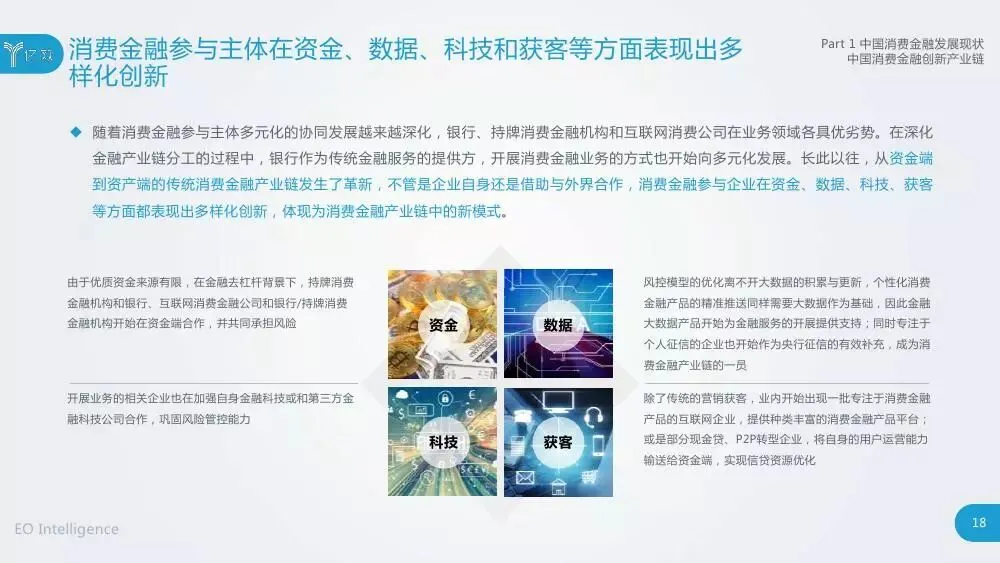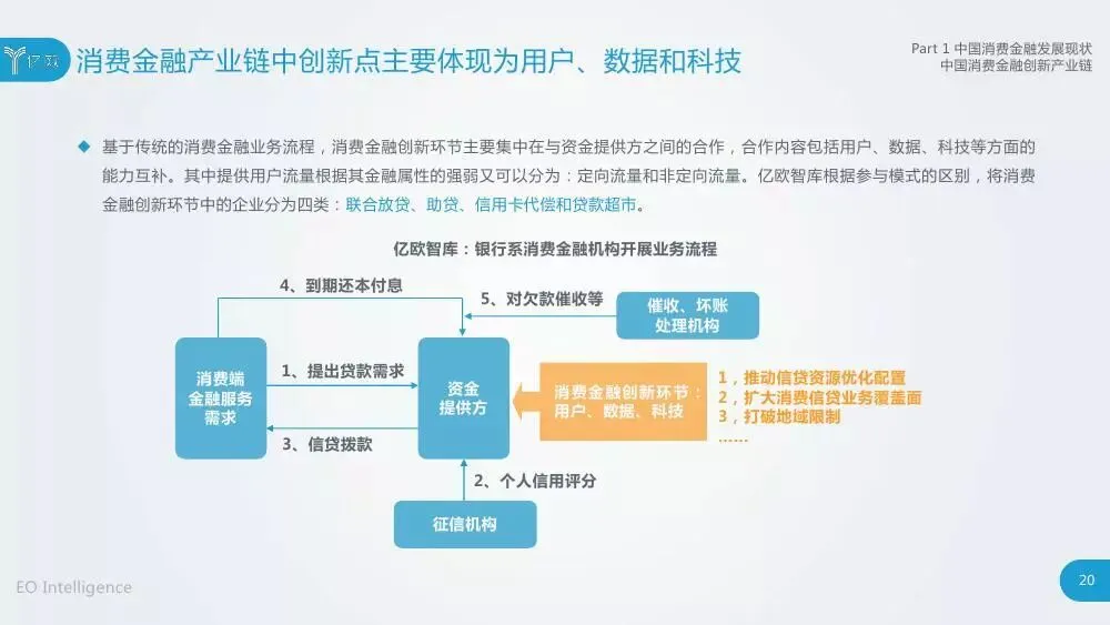 亿欧智库基于对市场的长期观察,围绕“市场主导的创新行为”,尝试梳理现今消费金融创新的各种模式,从不同消费金融参与主体出发,洞察各类创新模式的源起、业务优势和存在问题。同时筛选全球具有代表性的消费金融企业进行分析,结合中国消费金融发展趋势及现状,对中国消费金融创新提出几点建议。