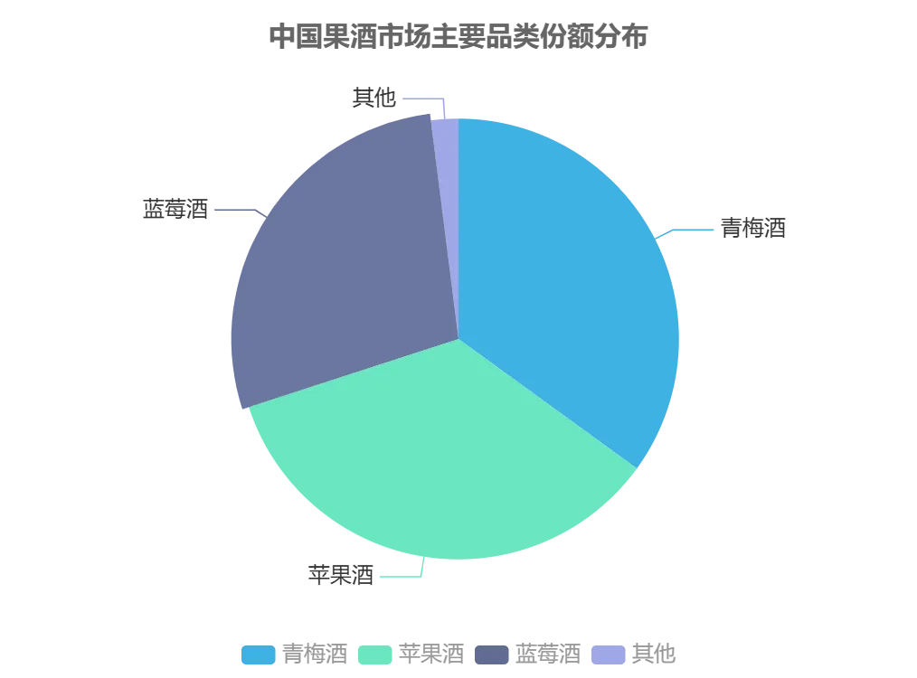 中国果酒市场呈现“传统主导-新兴崛起”的双轨发展格局,2023 年以 3.2 亿吨的水果年产量为产业提供坚实原料基础。传统主流品类中,青梅酒占据果酒细分赛道 35%以上市场份额,梅见青梅酒年销售额突破 28 亿元,冰青推出的窖藏 5 年青梅酒溢价率达 300%,年增速达 32%。苹果酒在山东、河南等地有专用品种培育,与蓝莓酒共同占据市场份额前两位,分别为 35%和 28%。