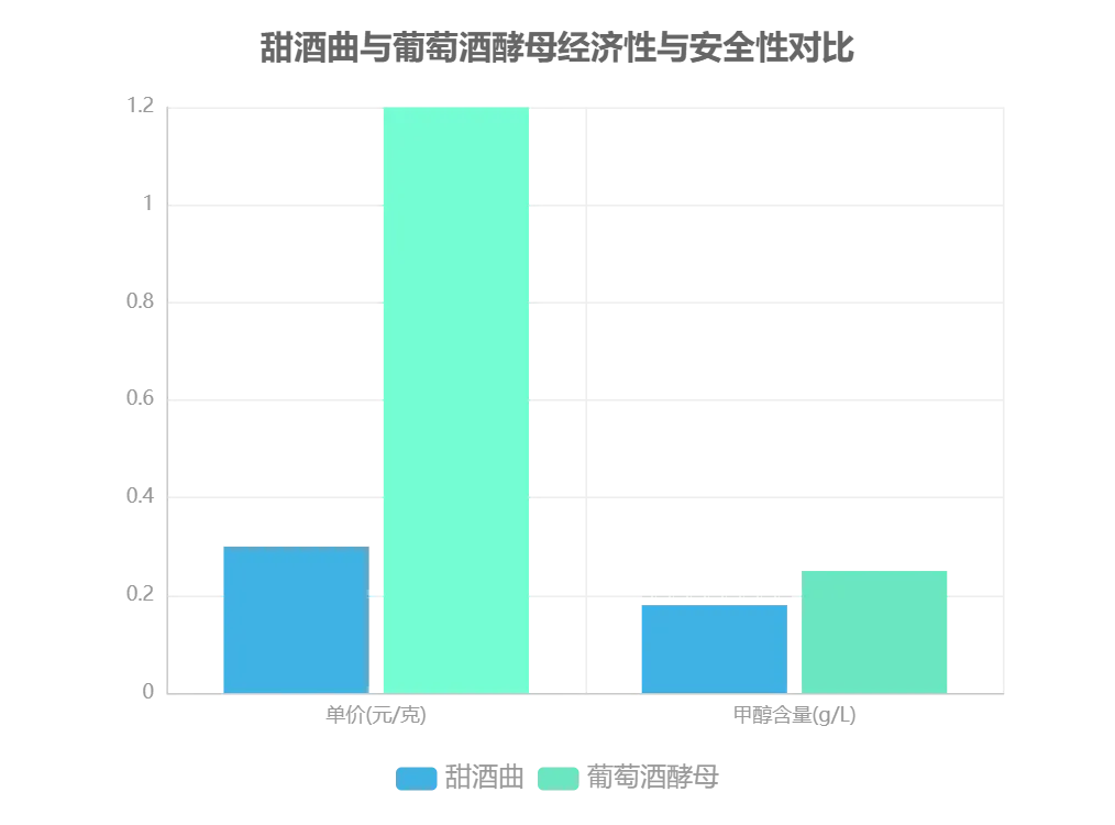 现代工艺在经济性与安全性上亦具优势。甜酒曲单价仅为葡萄酒酵母的25%(0.3元/克 vs 1.2元/克),且新手操作成功率达78%。安全性方面,甜酒曲发酵的桃酒甲醇含量平均0.18 g/L,低于葡萄酒酵母发酵的0.25 g/L,符合GB 2758 - 2012标准要求。未来通过复合菌种比例优化(如甜酒曲与果酒酵母1:4混合)及特种菌株开发,有望进一步拓展高单宁水果发酵等应用场景。