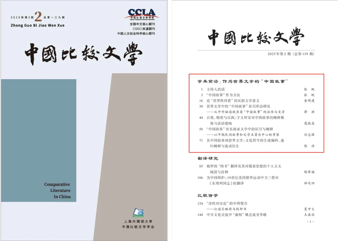 研究中心依托教育部重大课题,在CSSCI来源期刊《中国比较文学》开设特约专栏“学术前沿:作为世界文学的‘中国故事’”。