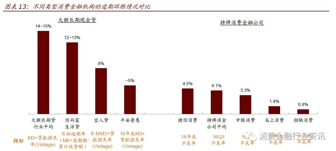 如当前持牌消费金融公司平均不良率(~4.1%)高于银行信用卡平均不良率(~2.0%),主要由于其服务人群相较信用卡人群更加次级。