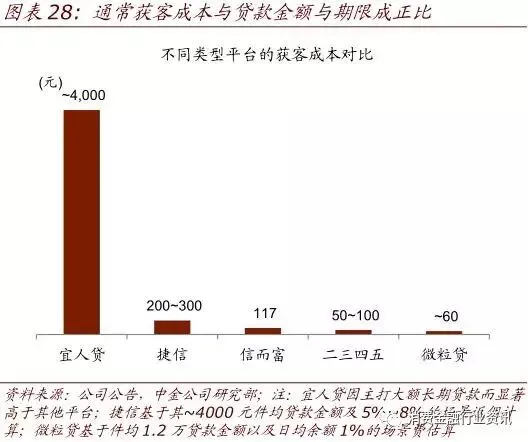 ►获客成本:中银消费营业费用(获客成本为主)占贷款余额比例稳定在2%附近;宜人贷贷款端的获客成本~4,000元,对应件均贷款金额的6%~7%,目前正通过更精准地获客来提升用户转化率,据此降低获客成本。