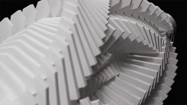 荷兰雕塑家Jennifer Townley创造了一系列迷幻机械装置,它们环绕在一个轴承周围,由简单旋转式发动机驱动,错综复杂,反复出现的模式扭曲,循环和合并让人目不暇接。这个醉心于物理学、工程学和数学的艺术家在几何图案上得到了启发。图像中线与图之间的互相搭配完全能够实现无限重复。