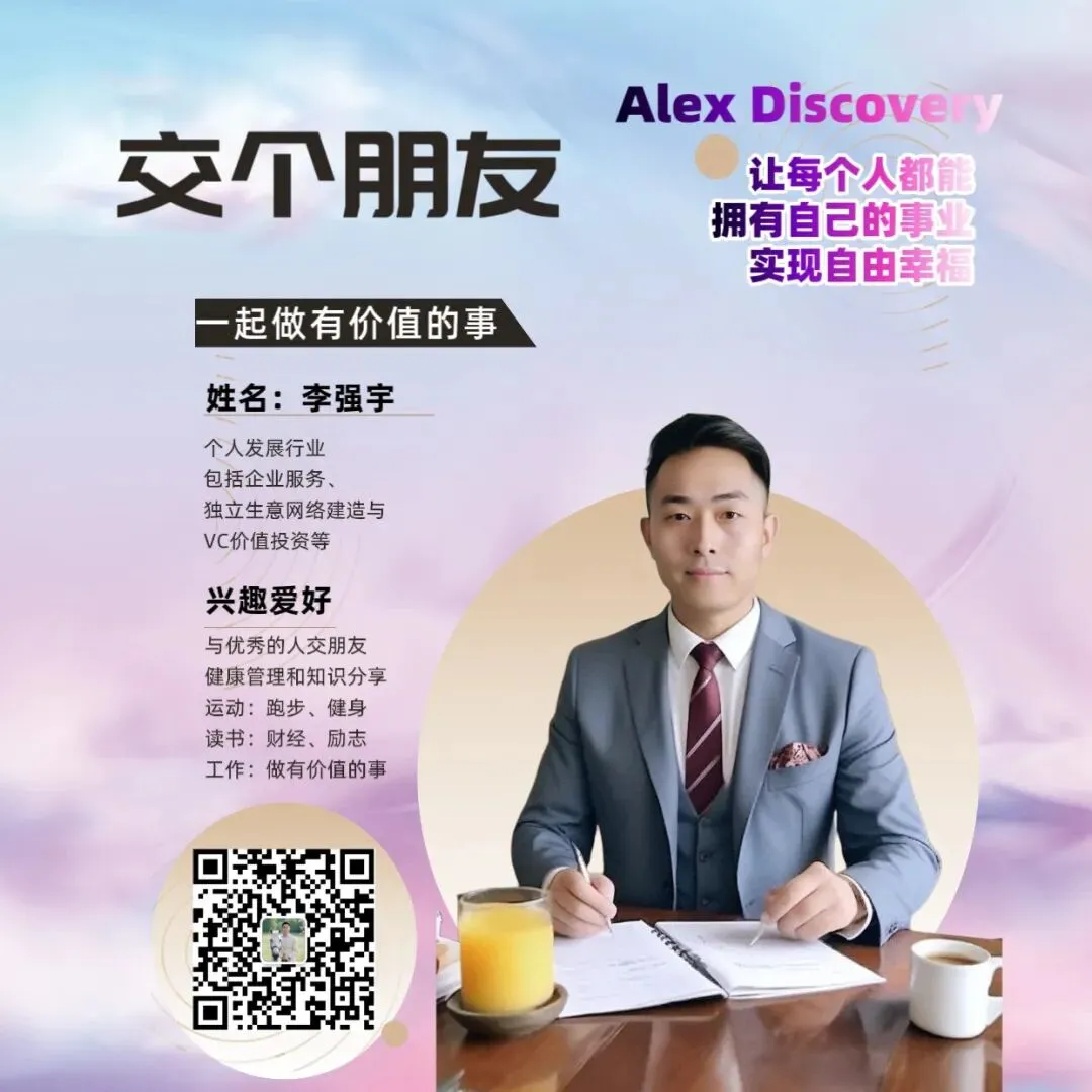 我是李强宇,前IT和企业咨询行业从业者,现安利合作商、网络21系统创业导师,专注于帮助传统企业老板和高管,通过轻资产创业实现被动收入和时间自由。
