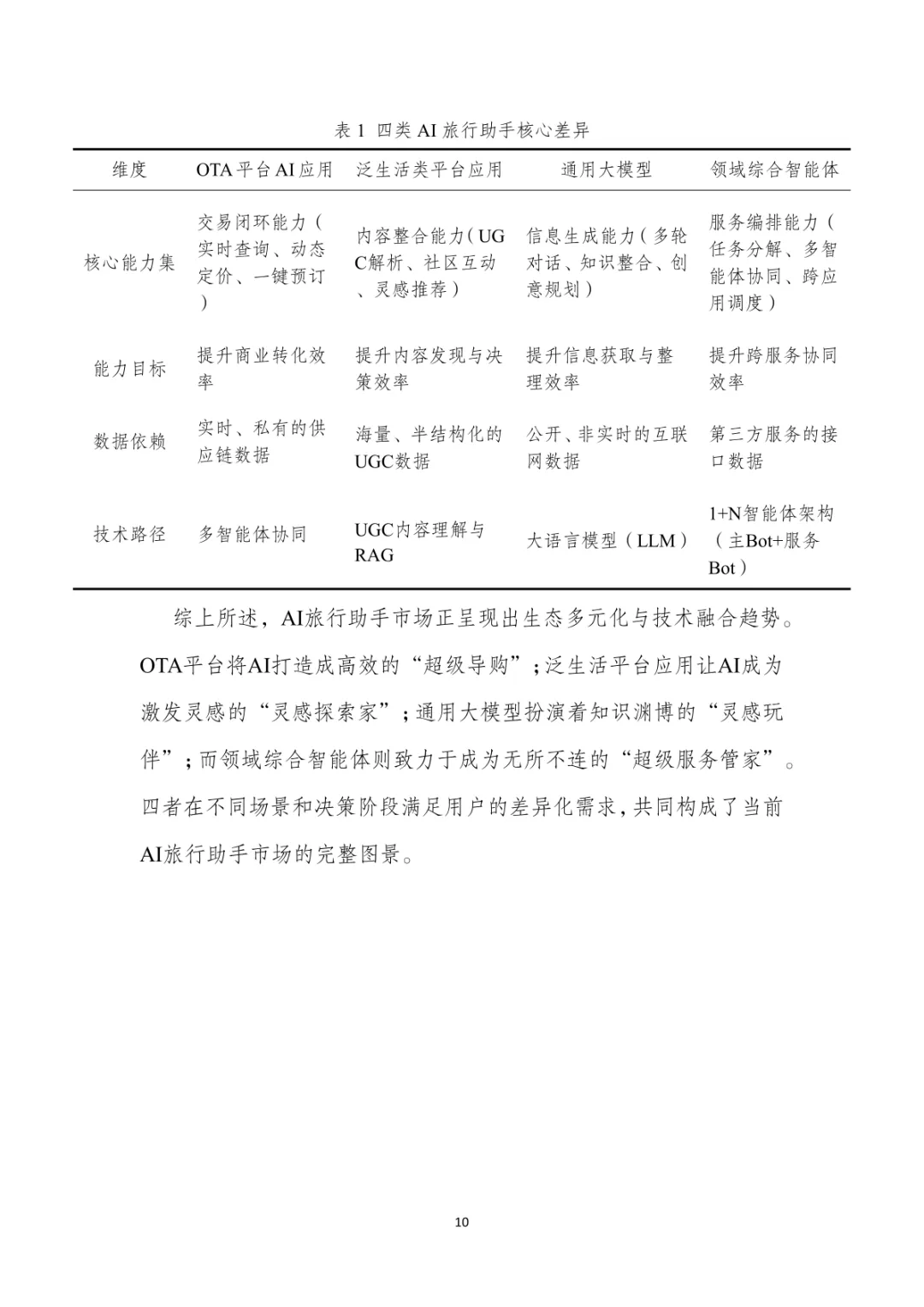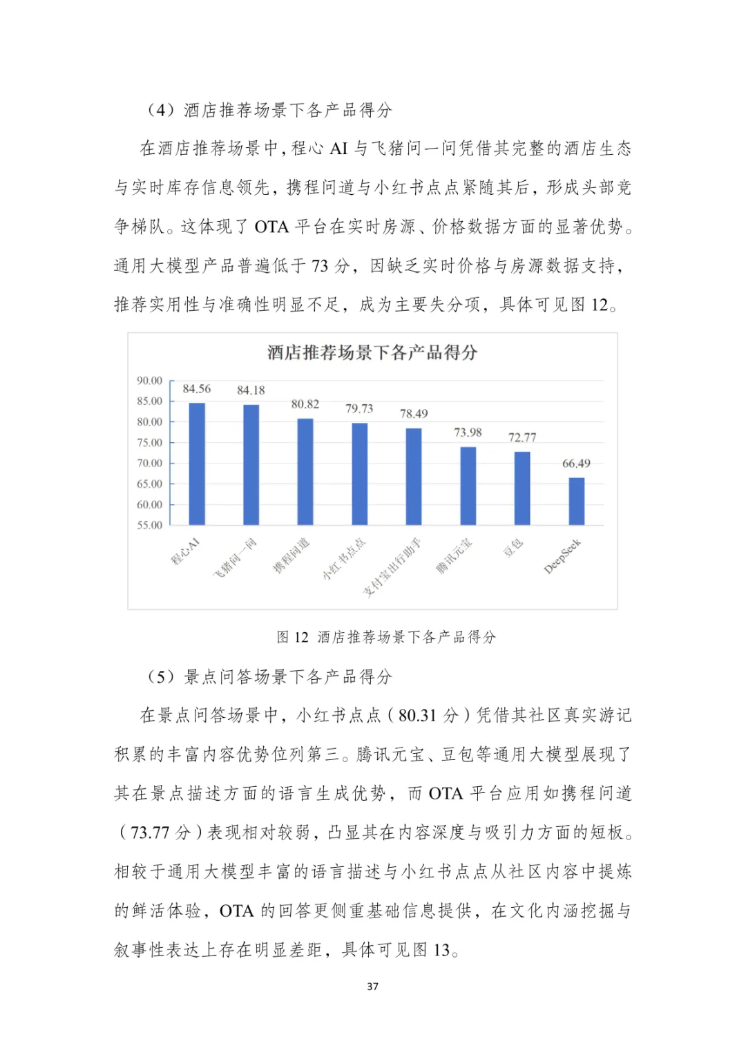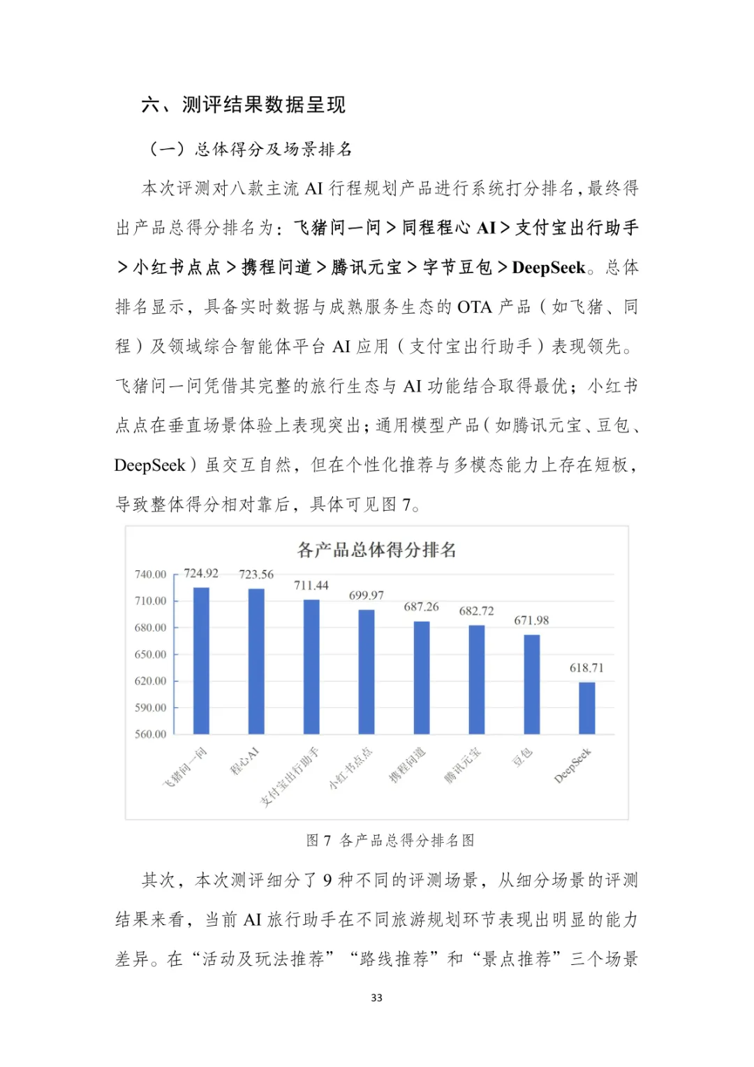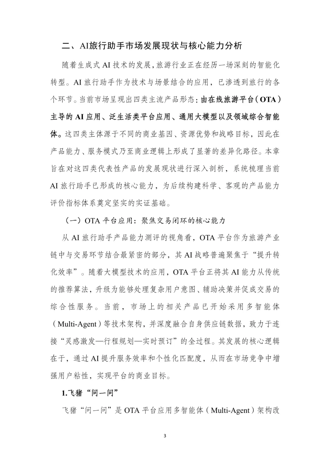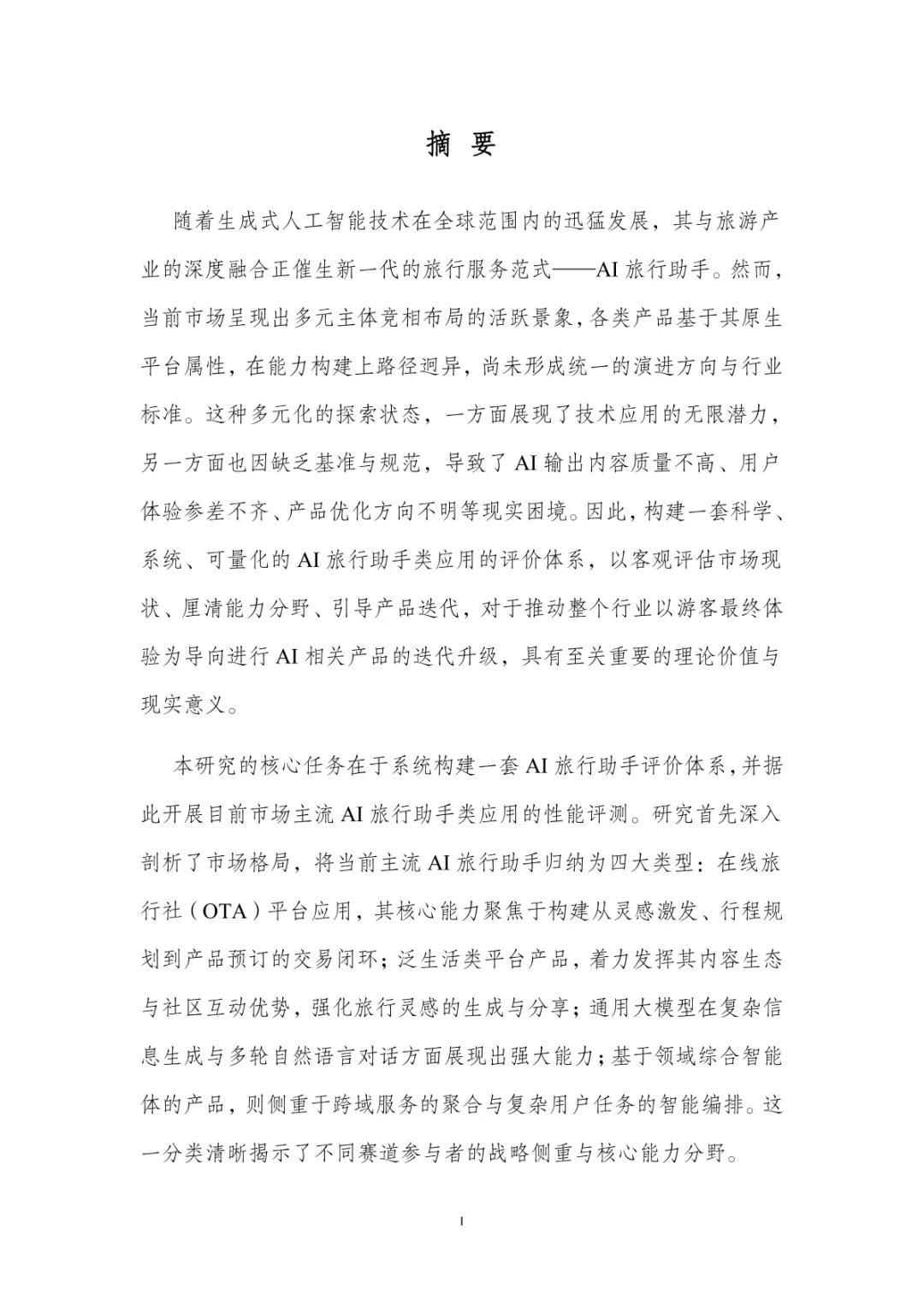 导读:报告基于对八款主流产品的系统评测,构建科学评价体系并剖析行业发展现状与趋势。AI 旅游行程助手市场形成四大产品类型,OTA 平台聚焦交易闭环,泛生活类平台依托内容生态,通用大模型擅长信息生成,领域综合智能体侧重服务聚合。报告首创可用性、易用性、个性化、安全性、流畅性五大维度评价体系,通过 600 条评测查询语句与 4691 次人机交互评测,全面评估产品表现。评测结果显示,飞猪 “问一问”、同程 “程心 AI” 等 OTA 产品凭借实时数据与供应链优势整体领先。行业在景点推荐、活动玩法等 “灵感激发” 场景表现突出,但在出行方式推荐、行程安排等需实时数据与复杂推理的场景存在明显短板。多模态能力、隐性个性化推荐是全行业共性不足,未来需向沉浸式交互、动态规划与智能体深度集成方向升级。