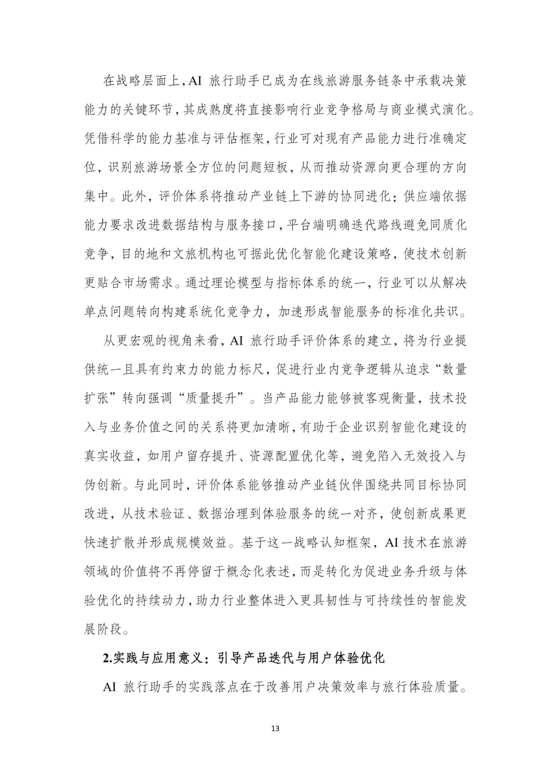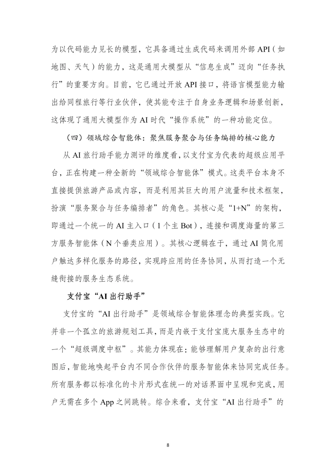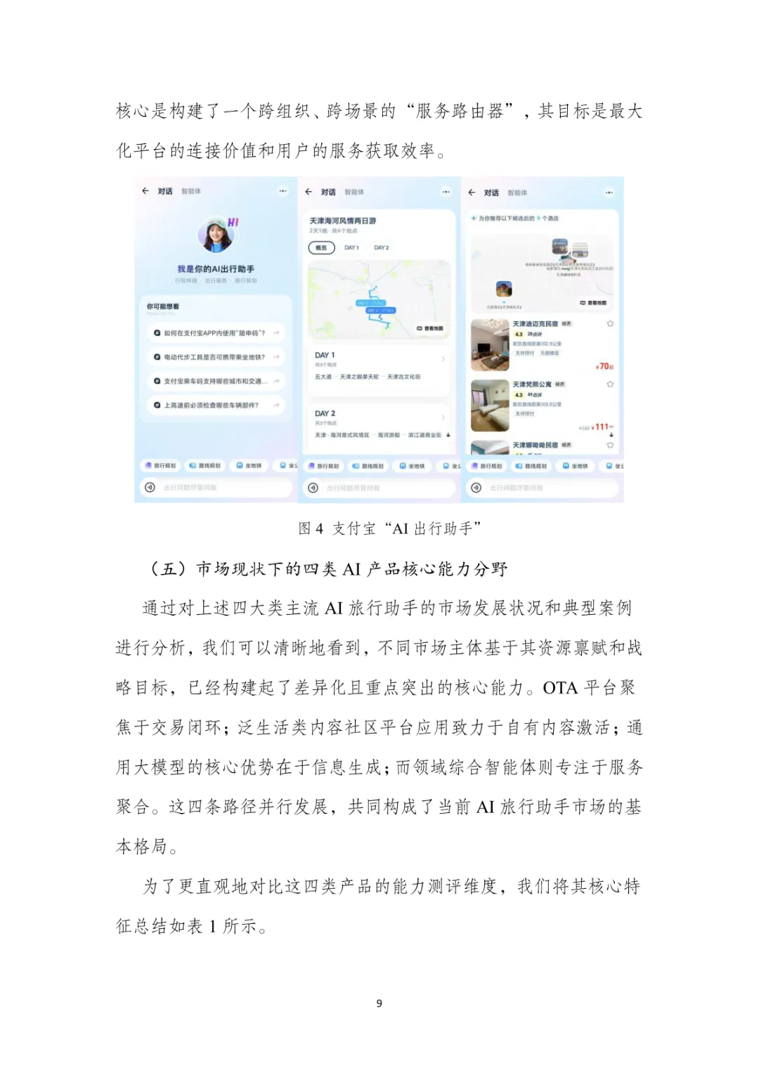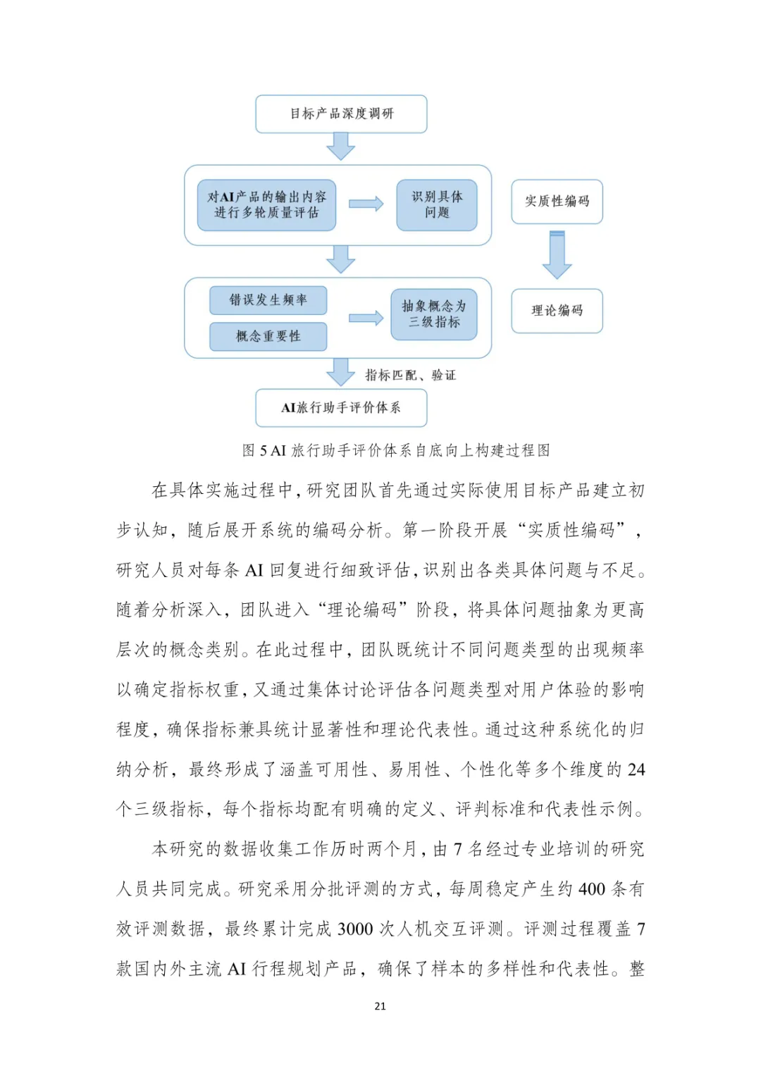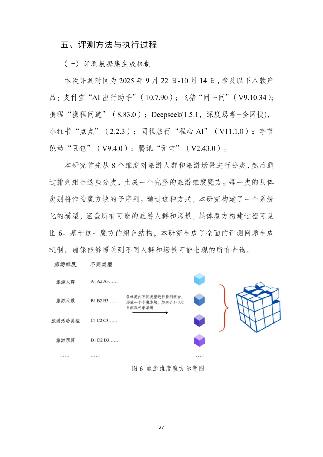 导读:报告基于对八款主流产品的系统评测,构建科学评价体系并剖析行业发展现状与趋势。AI 旅游行程助手市场形成四大产品类型,OTA 平台聚焦交易闭环,泛生活类平台依托内容生态,通用大模型擅长信息生成,领域综合智能体侧重服务聚合。报告首创可用性、易用性、个性化、安全性、流畅性五大维度评价体系,通过 600 条评测查询语句与 4691 次人机交互评测,全面评估产品表现。评测结果显示,飞猪 “问一问”、同程 “程心 AI” 等 OTA 产品凭借实时数据与供应链优势整体领先。行业在景点推荐、活动玩法等 “灵感激发” 场景表现突出,但在出行方式推荐、行程安排等需实时数据与复杂推理的场景存在明显短板。多模态能力、隐性个性化推荐是全行业共性不足,未来需向沉浸式交互、动态规划与智能体深度集成方向升级。