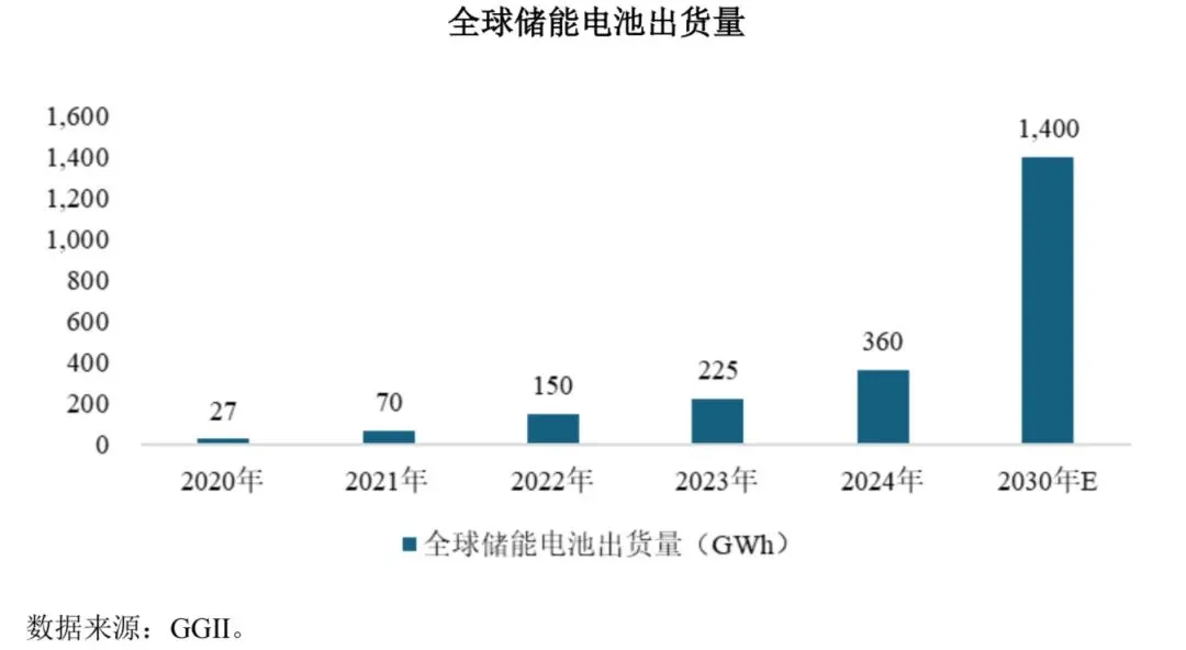 根据 GGII 数据,全球储能电池出货量自 2020 年的 27GWh 增长至 2024 年的 360GWh,年均复合增长率为 91.1%,并预期将增长至 2030 年的 1,400GWh,2024 年至 2030 年年均复合增长率为 25.4%;中国储能电池出货量从 2020 年的16GWh 增长至2024 年的340GWh,年均复合增长率为 114.0%。 2025 年1-9 月,我国储能电池出货量达到 430GWh,已达到 2024 年全年总量的 130%,保持较高的增长速度。