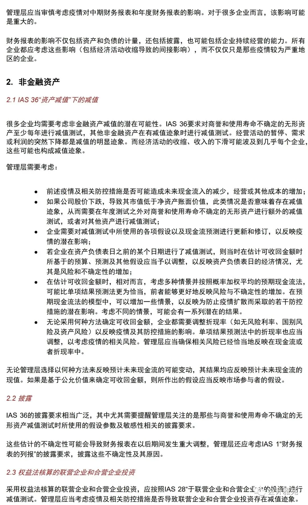 疫情有可能带来减值迹象,从而需要对更多资产进行减值测试;