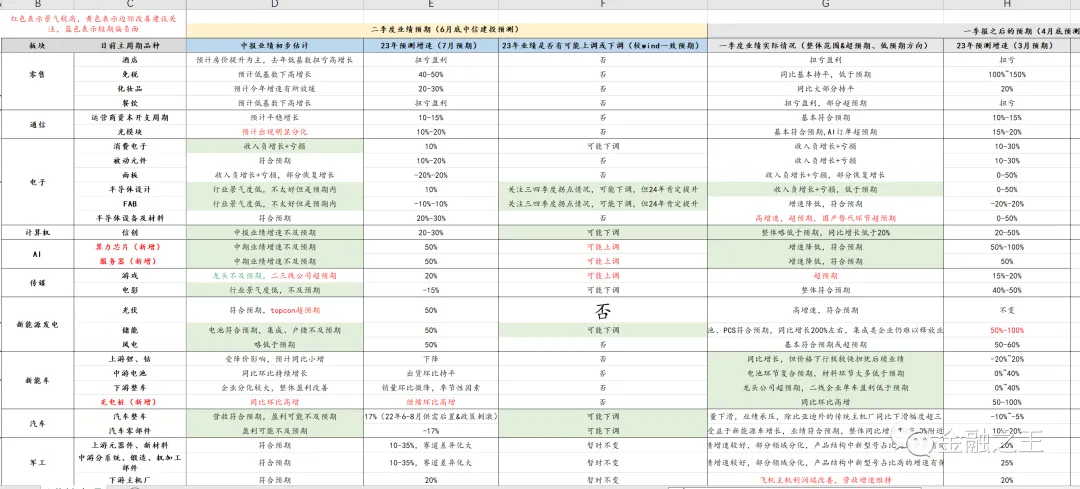 下面是一份各个行业业绩预期的统计,收盘看了一下。字太小了我截不完整,完整的我放后台了。