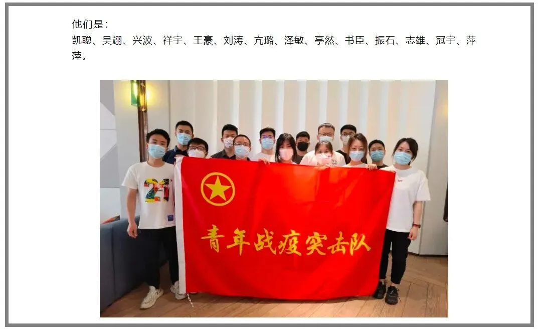 3月中旬,深圳福田区爆发疫情。腾讯党委和企业文化部接到市里关于召集志愿者火速驰援福田区疫情防控工作的紧急需求,当晚公司对深圳员工发送了《深圳战疫一线需要你》的邮件,尽管是周末,报名人数还是很快达到了数十人。其中十余位员工当晚直接出发,而腾讯文化官微也记录下了他们每一个人的名字。