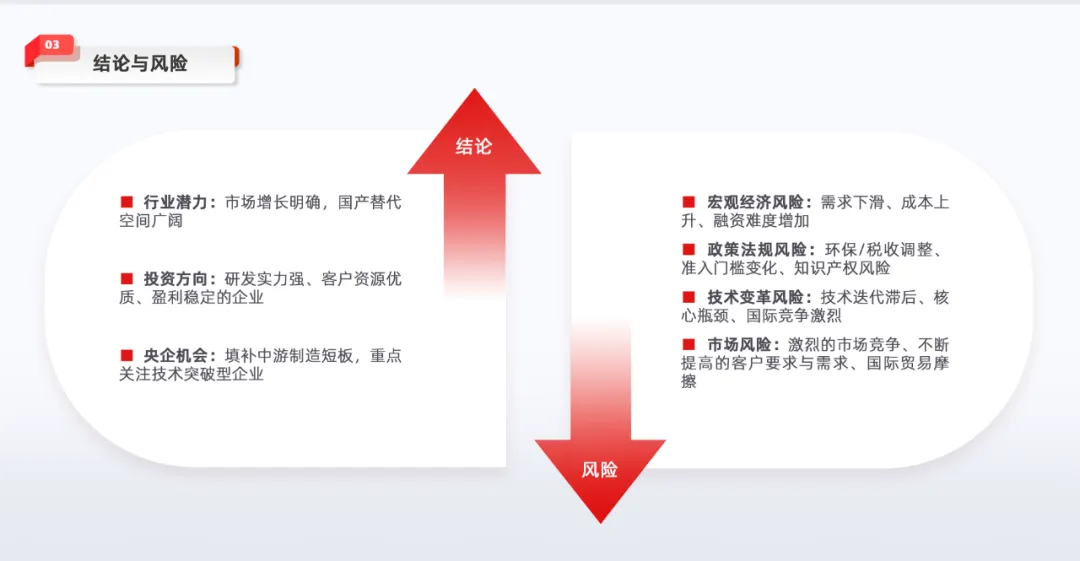 从投资角度而言,应关注具有较强研发实力、销售能力、盈利能力和合理团队构成,且在行业中具有一定地位和发展潜力的企业。同时,要充分考虑宏观经济波动、政策法规变化、技术变革和市场竞争等风险因素。行业未来发展潜力巨大,随着国内企业技术进步和市场拓展,有望逐步提升市场份额,在高端制造等领域发挥更重要的支撑作用。