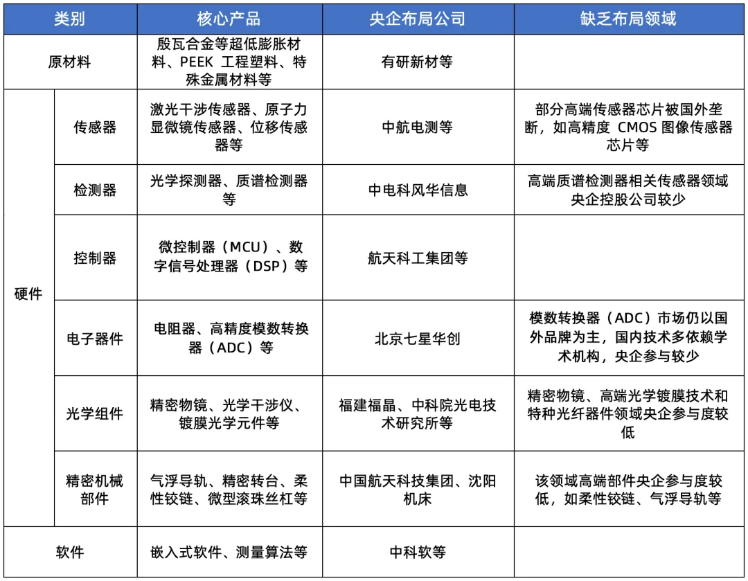 此外,国有资本在中游精密测量仪器研发制造的布局较少,国内市场仍被海外厂商占据绝对份额,是央企产业链的短板环节。