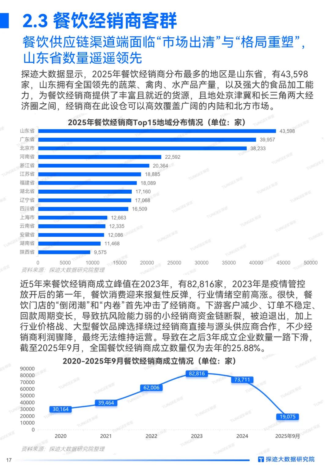增量客群方面,餐饮门店超1700万家,川菜、快餐占比高,分极致性价比与高端化路径;连锁品牌超3.1万家,火锅、饮品品牌多,半数以上聚焦3城以内深耕;山东餐饮经销商数量最多,近年因市场波动数量下滑;预制菜企业超7.4万家,集中于农业基础好省份;调料企业潜在客户广,新兴渠道成增长点;餐饮运营企业头部效应加剧,向解决方案服务商转型。