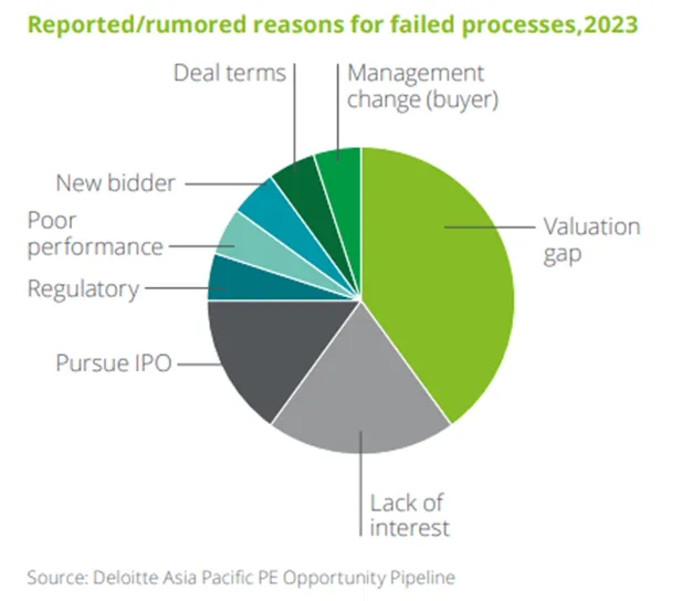 尽管被投机构的运营业绩在疫情后有所回升,但退出估值水平并未随之提高。更高的利率和更具不确定性的宏观环境正在侵蚀财务投资人的潜在回报,而他们的预期投资收益率仍未下调。更高的融资成本正在不可避免地迫使交易买方降低潜在的交易出价,这实际上给退出估值增加了预期投资收益率的门槛。