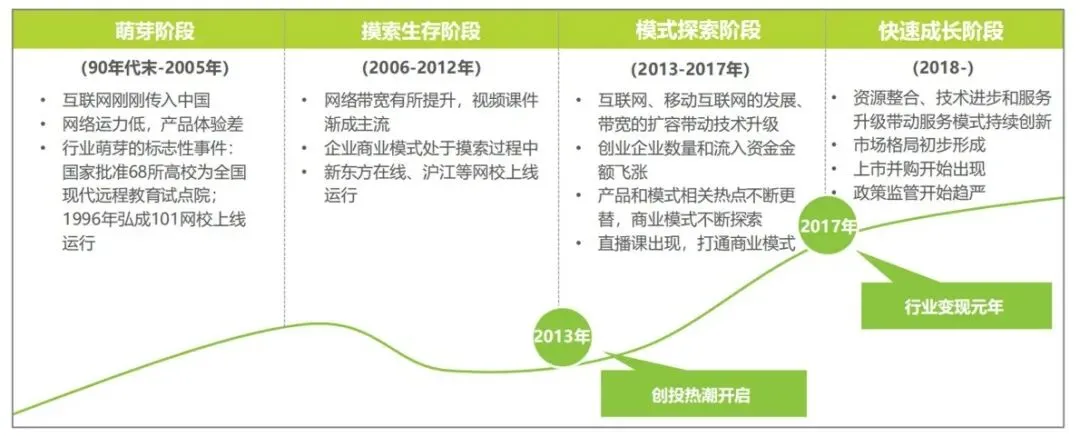 ? 经过20多年的发展,中国在线教育行业进入快速成长阶段,在线教育各个细分领域全面开花。