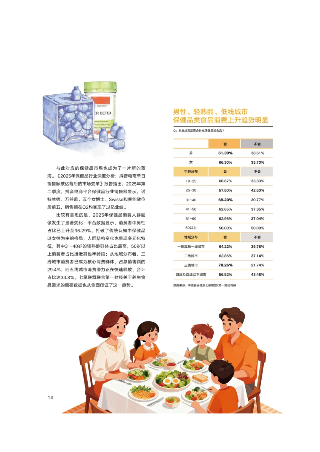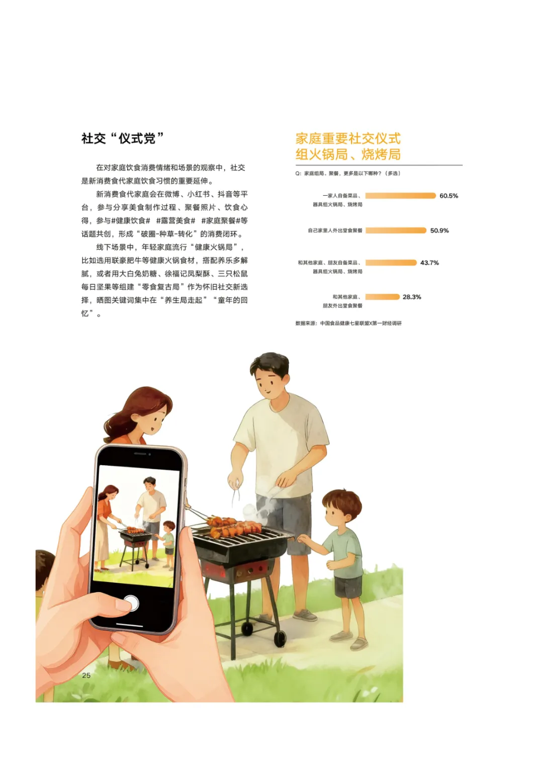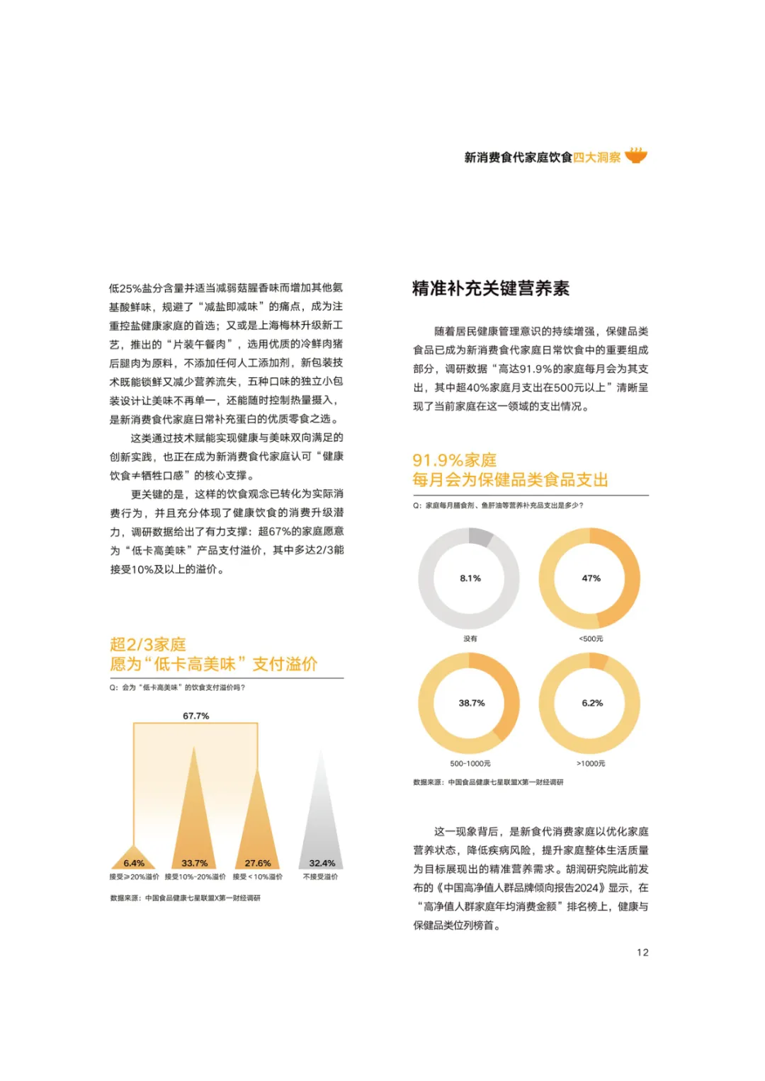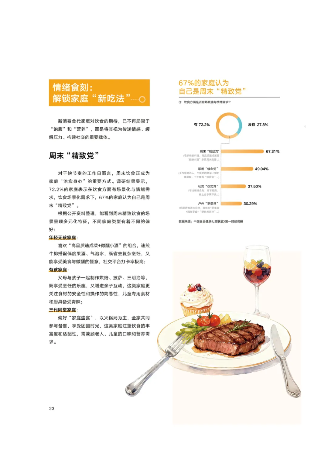 导读:报告基于 2768 份调研样本,聚焦新消费食代家庭饮食需求变革与趋势,呈现家庭饮食消费的全维度升级图景。新消费食代家庭以 80 后、90 后为核心决策群体,中高收入占比达 78.5%,覆盖一线至下沉市场。饮食需求已从单一食材升级转向 “全家适配、健康精准、效率与仪式感兼具”,分龄营养管理、成分溯源、便捷烹饪成为核心诉求。超 60% 家庭实行饮食分龄管理,82% 购买食品时优先查看配料表,近 80% 愿为可溯源成分支付溢价。效率饮食与情绪消费双线并行,半成品、智能厨具与即时零售构建 “30 分钟备餐” 生态,空气炸锅等小家电需求超 9 成。周末精致料理、户外露营饮食、家庭社交聚餐等场景化消费兴起,推动饮食成为情感传递载体。未来,技术赋能、场景细分、社交情绪价值与可持续性将成为行业核心发展方向,驱动饮食消费向多元价值共生升级。