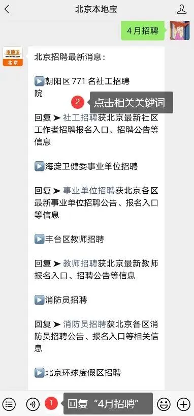 在聊天对话框内回复“4月招聘”