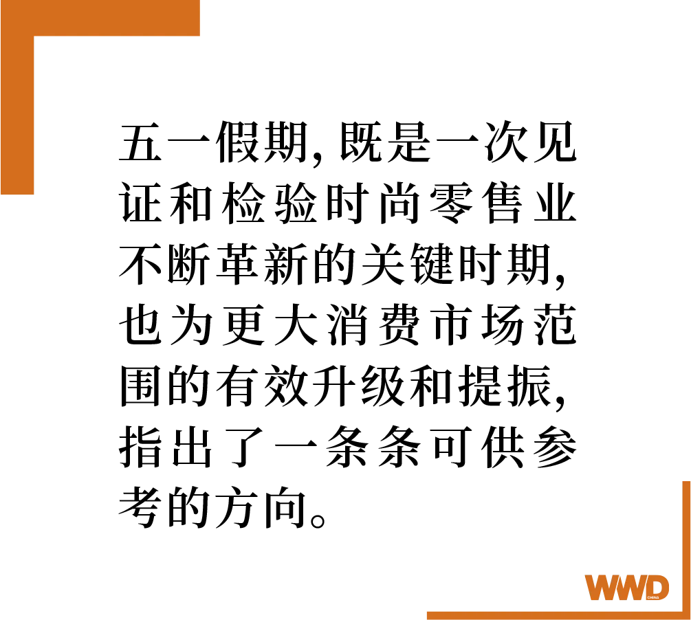 对于一向致力于高质量、高端化经营的时尚奢侈品零售业,则在刚刚结束的节假日带来了不同思路和策略 —— 通过在地文化的挖掘,艺术、科技、以及颇具凝聚力的青年社群,等等差异化经营特色来强化自身 IP 属性……五一假期,既是一次见证和检验时尚零售业不断革新的关键时期,也为更大消费市场范围的有效升级和提振,指出了一条条可供参考的方向。