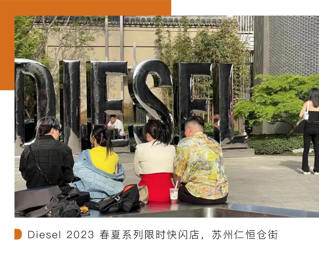 苏州仁恒仓街的 Diesel 在假期期间的 2023 春夏系列限时快闪店,除了最新秀款呈现,快闪店还与苏州本土品牌红楼·CENE联合打造特色餐饮空间。