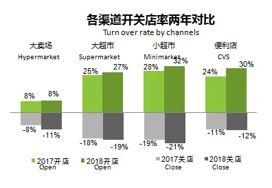 图14 2017年与2018年现代渠道开关店率对比
