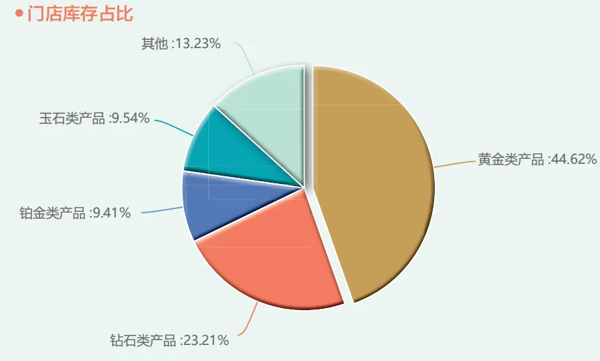销售情况由好至差依次是3D硬足金、5G黄金、18K金、古法金、22K金。其中,3D硬足金产品是目前门店销量最佳的金饰品类。
