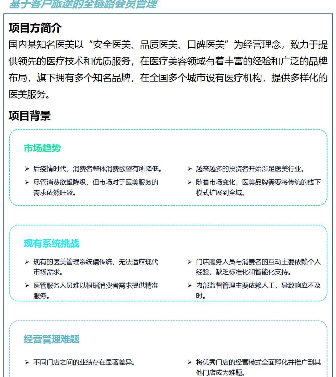 这张图把医美企业的数字化痛点拆解得明明白白,从会员预约、建档到回访,每个环节都存在人工依赖、数据不准的问题。比如客户自助预约不提醒客服、会员标签分散在微信和SAP系统,这也是很多中小企业的通病,而数字化转型就是针对性解决这些“效率卡点”。