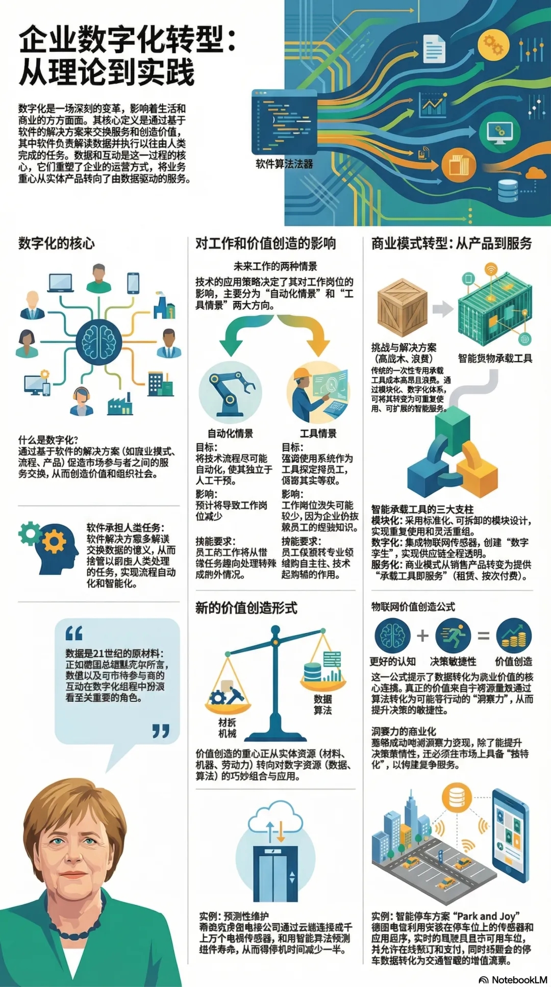 本报告通过对《企业数字化》一书的深度解构,识别出其作为一个“知识价值转化系统”的核心本质。书籍的核心发现在于:数字化转型的成功不在于单纯的技术堆砌,而在于通过软件方案解释数据语义,并将其转化为企业的“决策见解(Insights)”。该系统的核心价值体现为将抽象的工业4.0理论转化为可度量的工具(如M2DIP模型、RPA架构),为受众提供了一套可操作的“数字化ROI”实现路径。